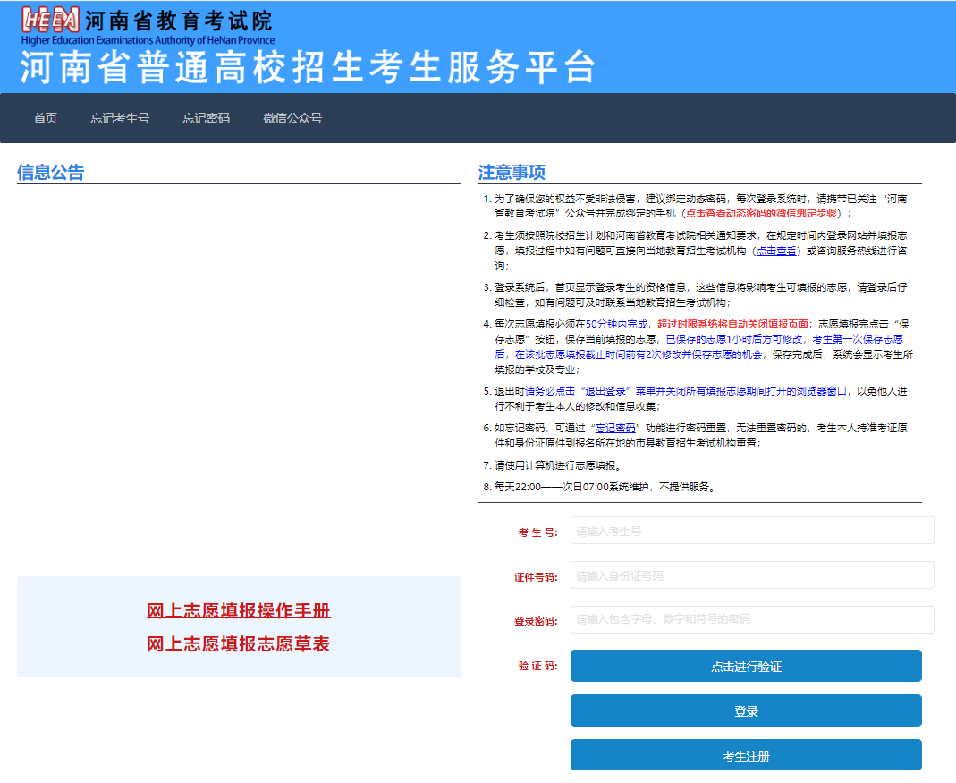 “河南省普通高校招生考生服务平台”
