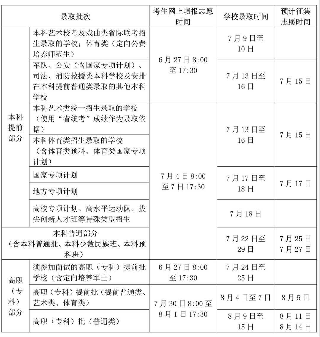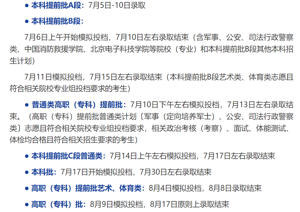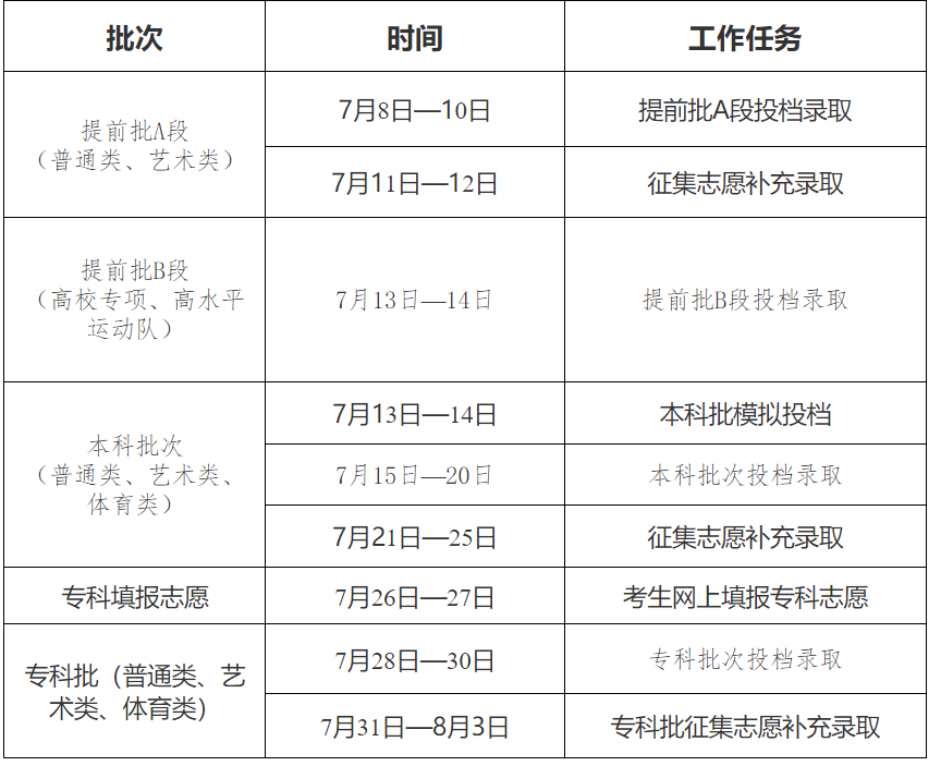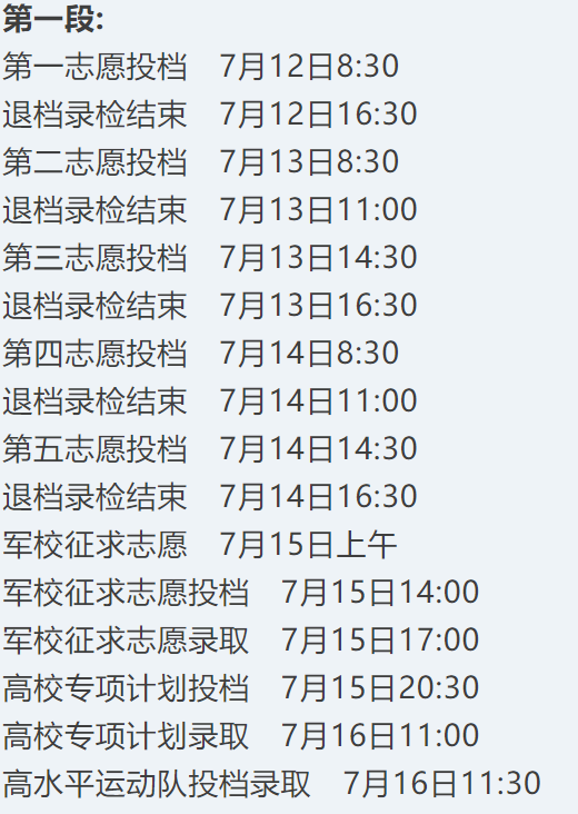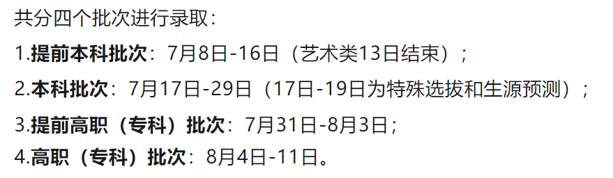 5.高职(专科)提前批院校录取:8月1日至7日。
