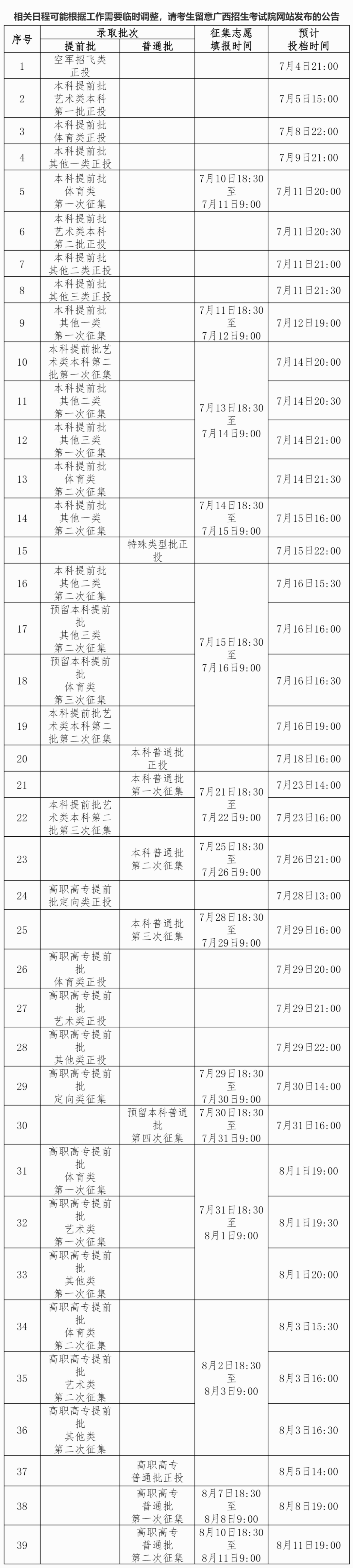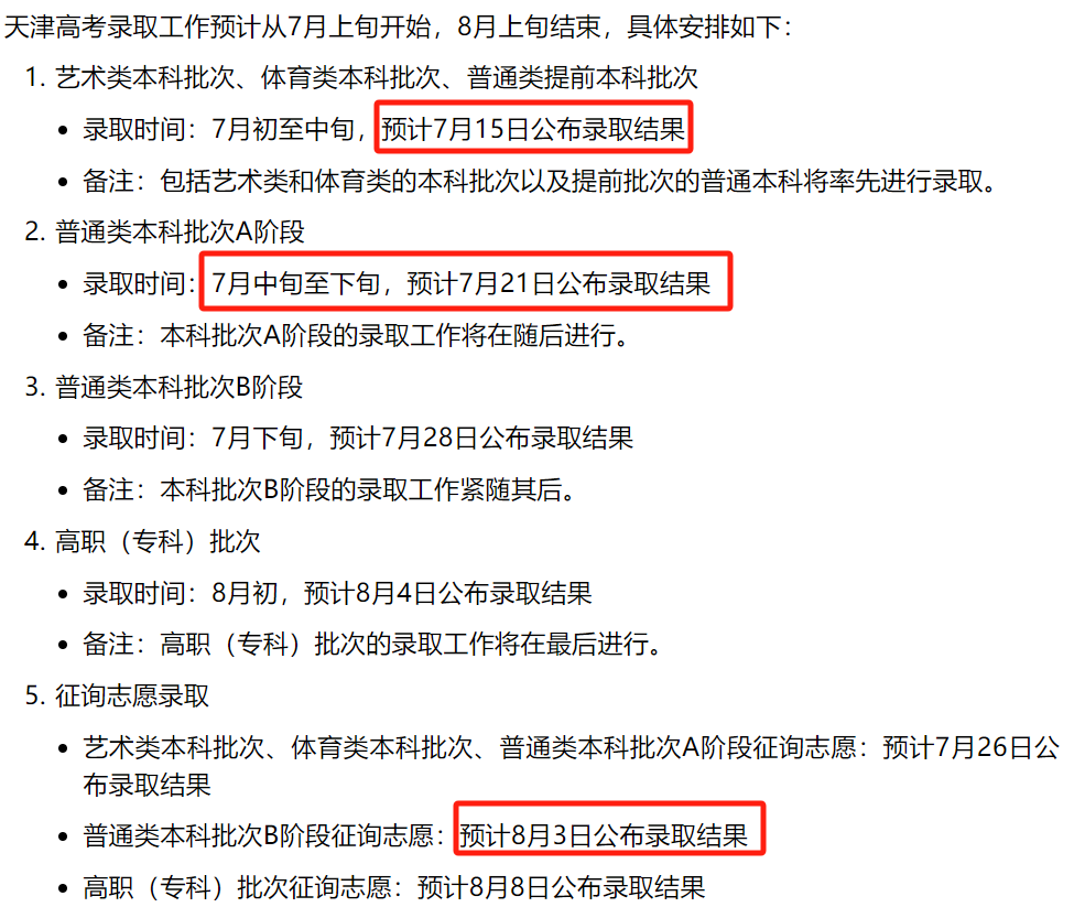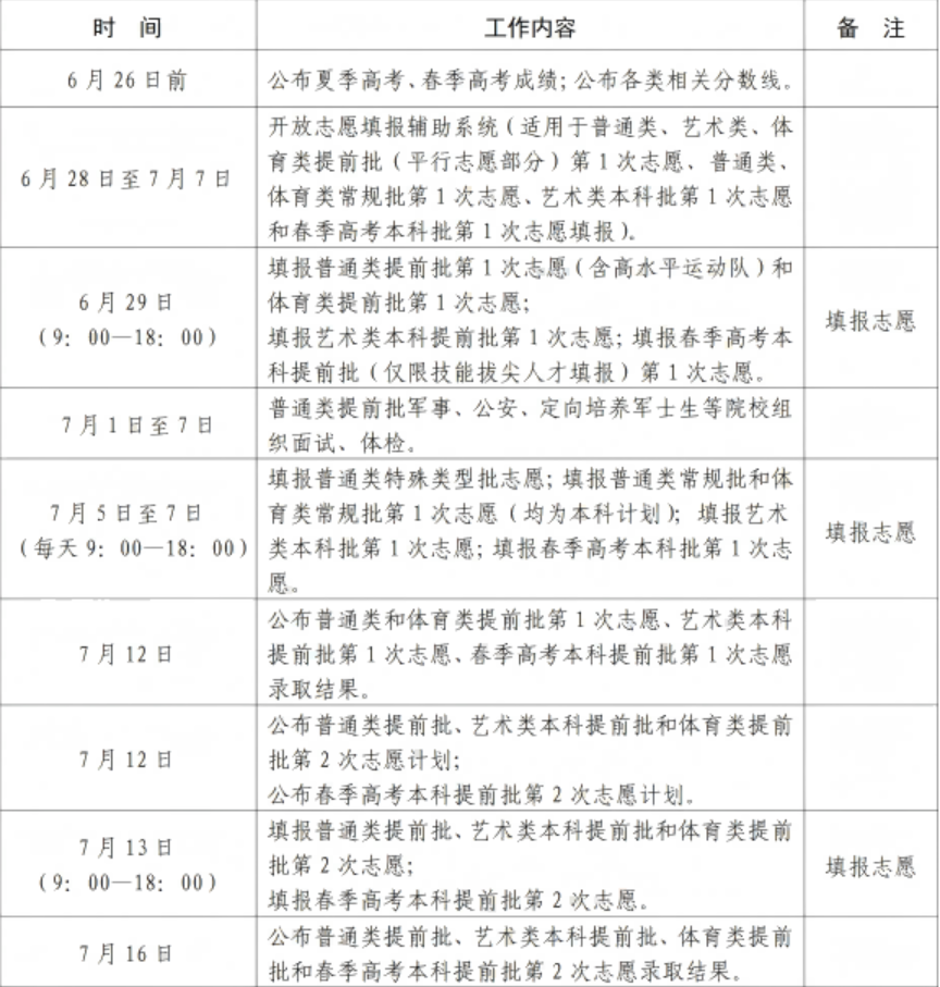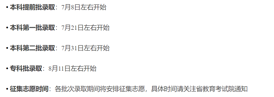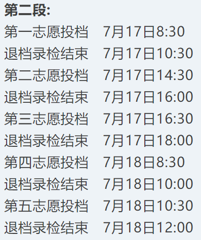 5.高职(专科)提前批院校录取:8月1日至7日。