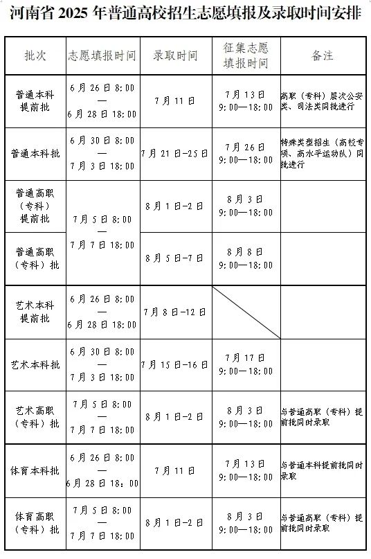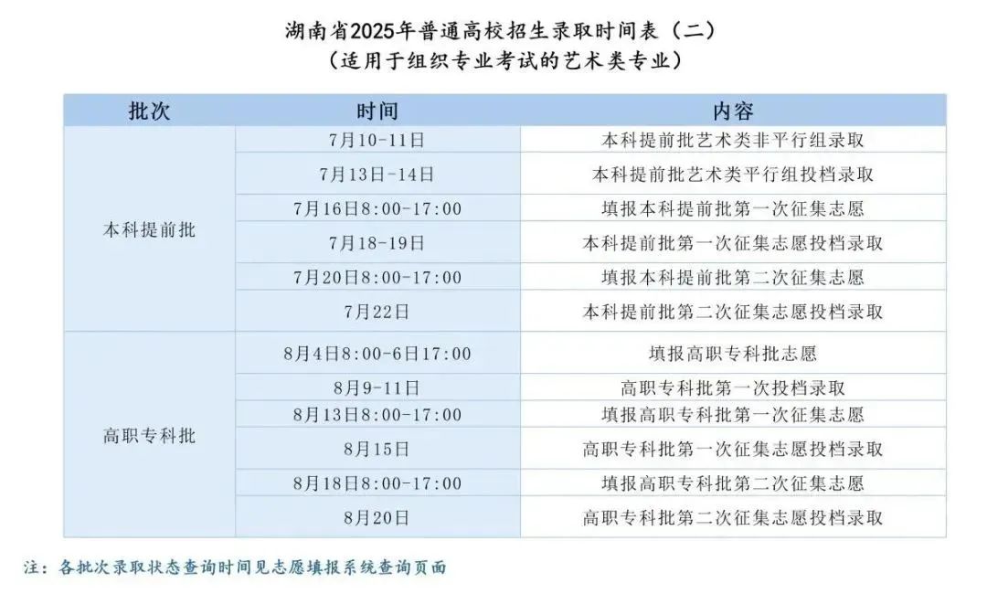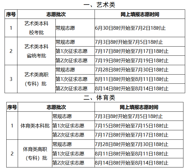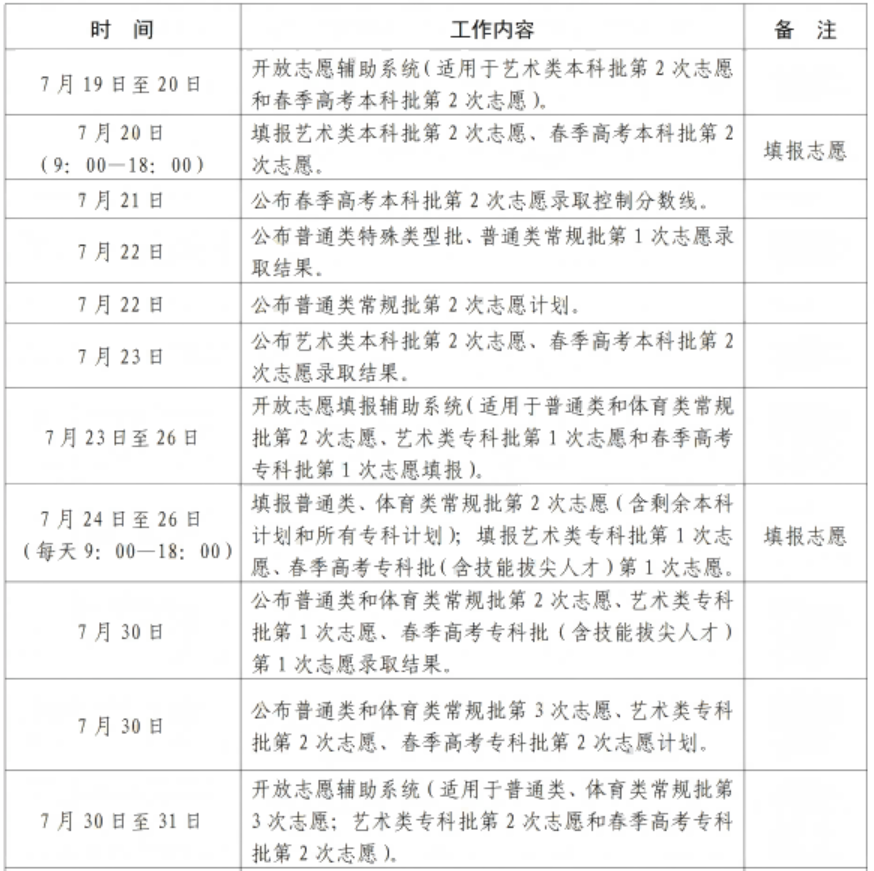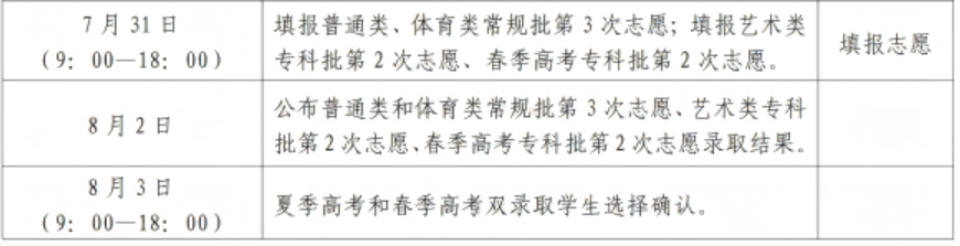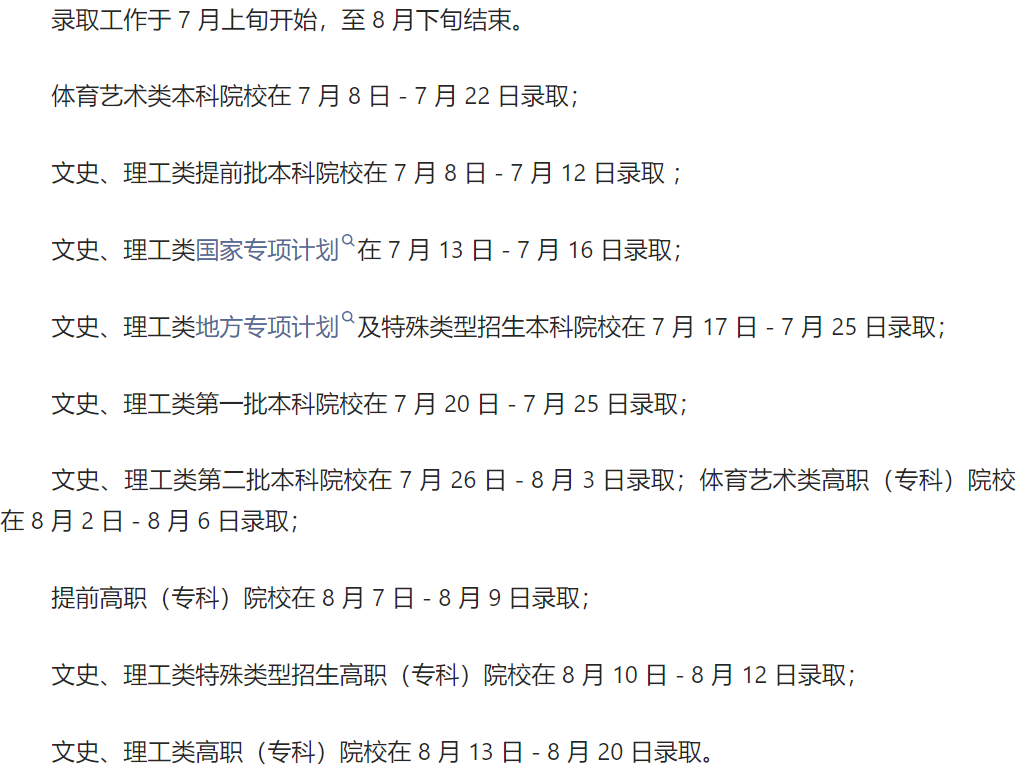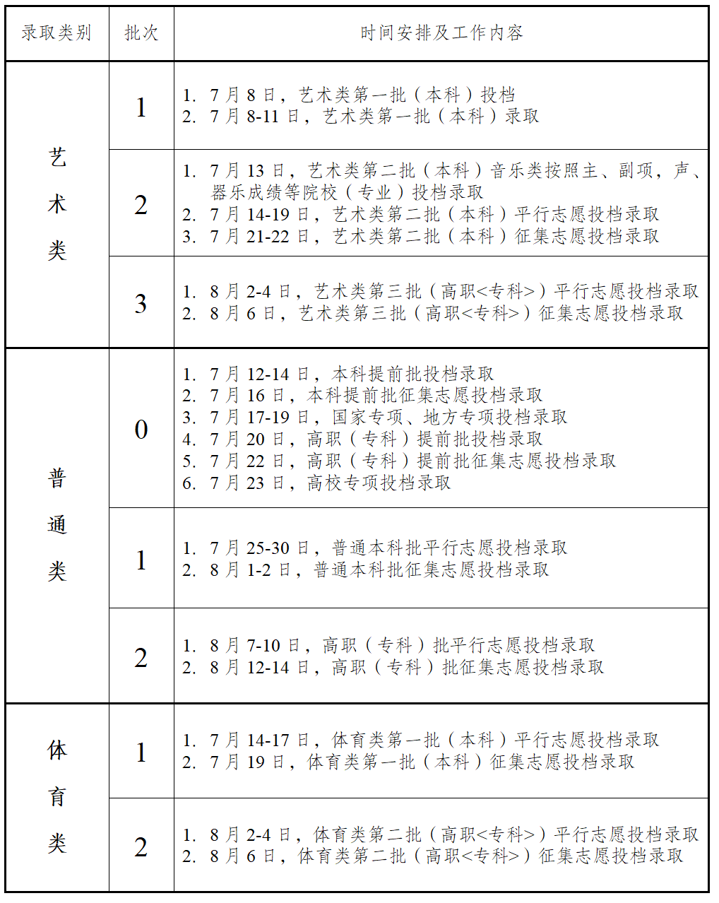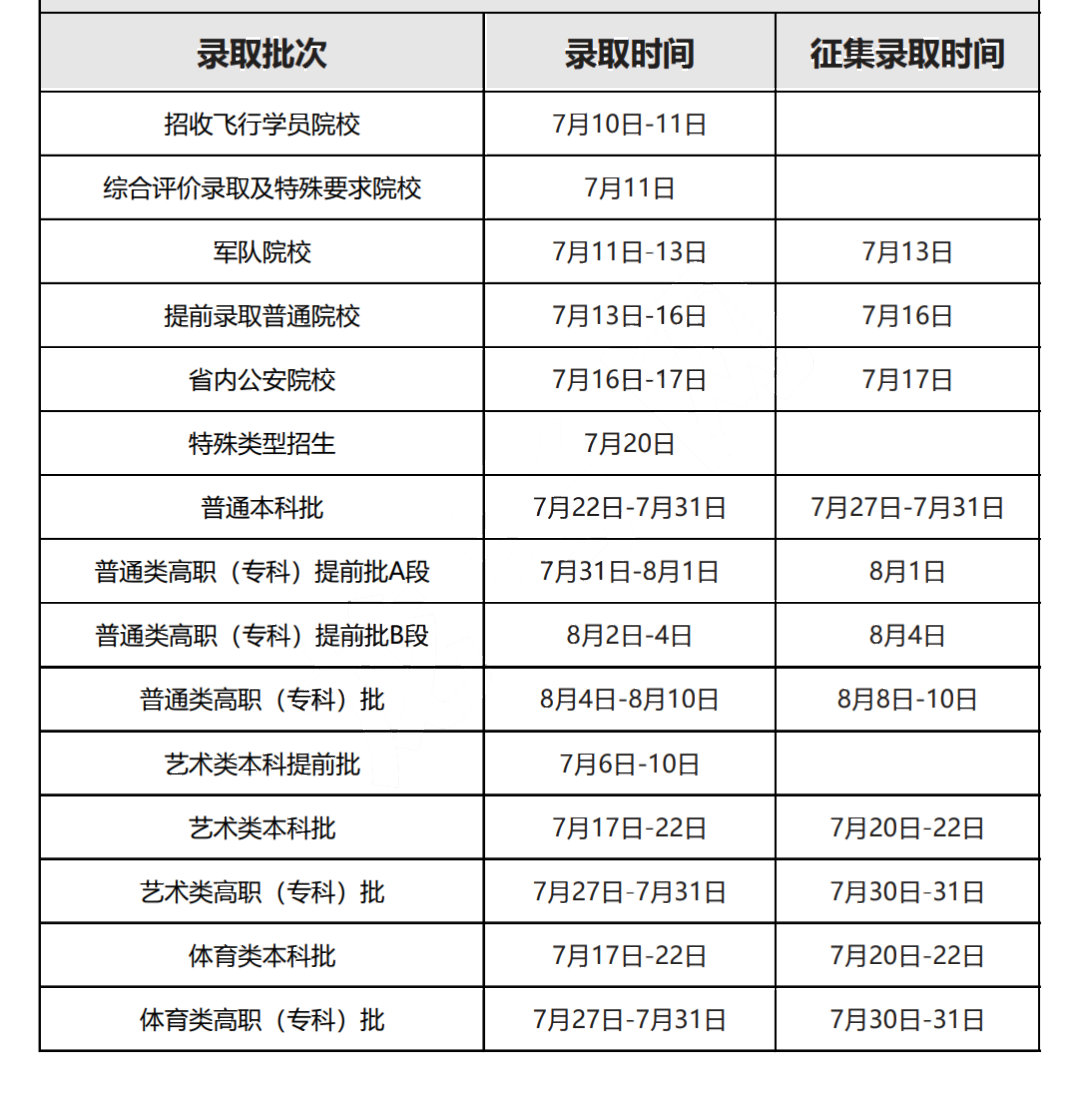 3.艺术类高职(专科)批院校录取:7月25日至31日。