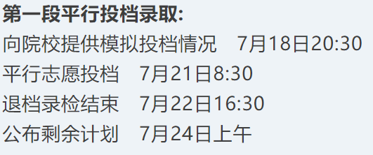 ①7月29日8:00—15:00,考生查询剩余招生计划并按时填报“征集志愿”;
