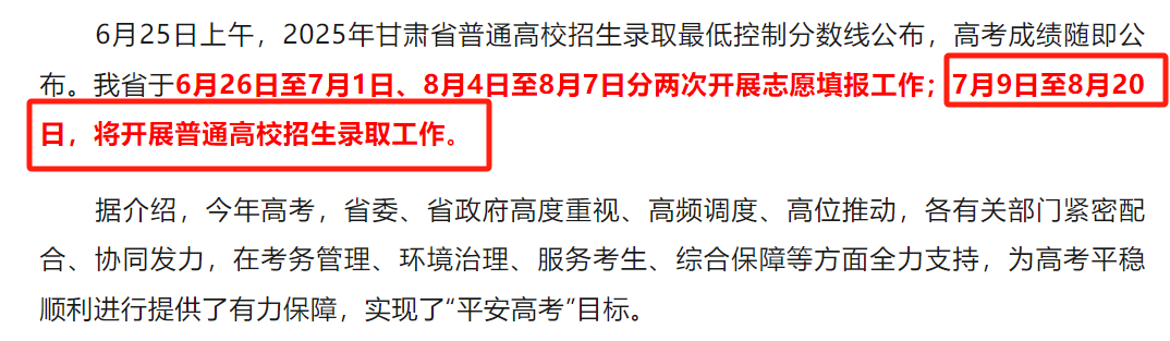 ①7月25日8:00—15:00,考生查询剩余招生计划并按时填报“征集志愿”;