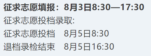 (2)8月5日8:00—12:00,考生查询剩余招生计划并按时填报“征集志愿”;