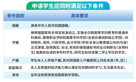 就读于普通高中和中职学校的学生,若其家庭的经济能力难以满足其大学期间的学习、生活基本支出均可申请,包括但不限于:高中阶段(含普通高中和中职学校)任一学年曾获得过国家助学金的学生、脱贫家庭学生、脱贫不稳定家庭学生、边缘易致贫家庭学生、突发严重困难家庭学生、低保家庭学生、低保边缘家庭学生、特困救助供养学生刚性支出困难家庭学生、其他低收入家庭学生、孤儿、事实无人抚养儿童、家庭经济困难残疾学生等特殊困难群体以及高中(含中职)学生资助管理部门认定的家庭经济困难学生。