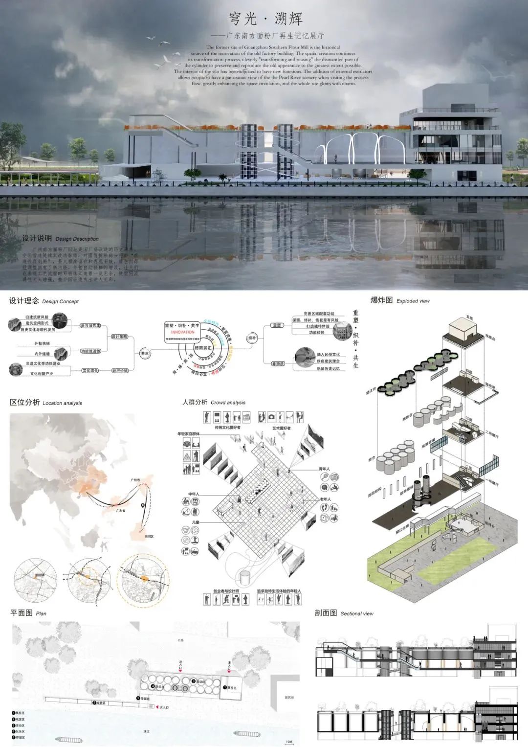 《穹光・溯辉》在广东南方面粉厂再生设计中,巧妙融合了工业遗产保护与现代功能需求,以创新的空间手法唤醒了建筑记忆。团队成员充分发挥各自专业优势,在历史文脉梳理、空间营造等方面展现出扎实的设计功底。这份荣誉不仅是对作品的肯定,更是对他们突破传统设计边界、勇于探索社会价值的褒奖。期待同学们能以此为契机,在未来的设计实践中继续深耕人文关怀,让更多创意转化为改善城市生活的现实方案。
