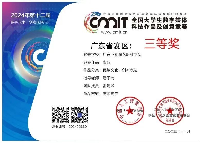 2024年的历史性成绩是起点,更是激励。我校将继续深化“岗课赛证”和“1+4”综合育人模式,激励师生创作出更多高质量作品,实现从“量的突破”到“质的飞跃”。