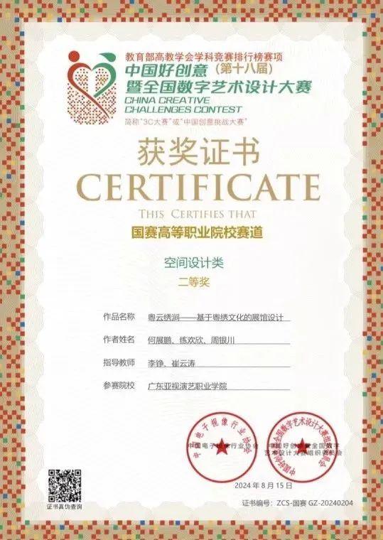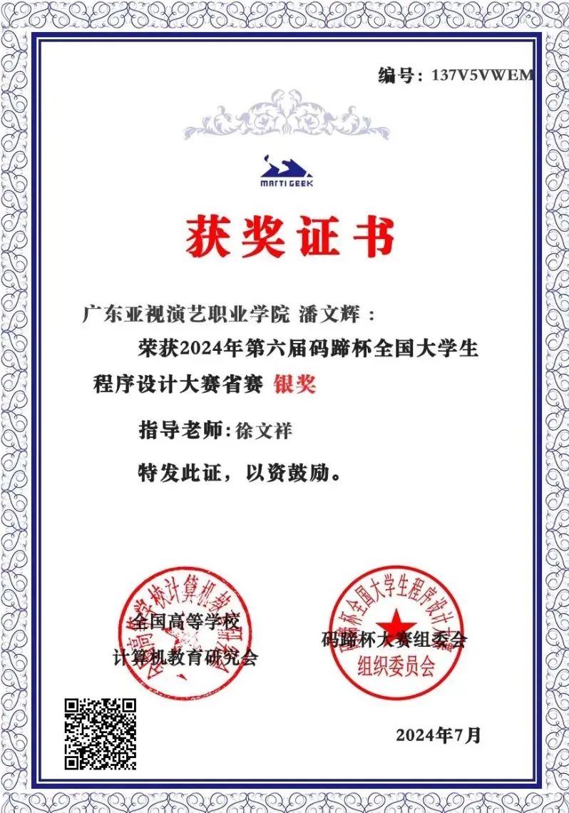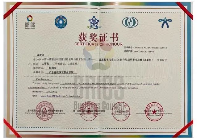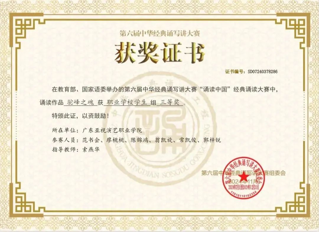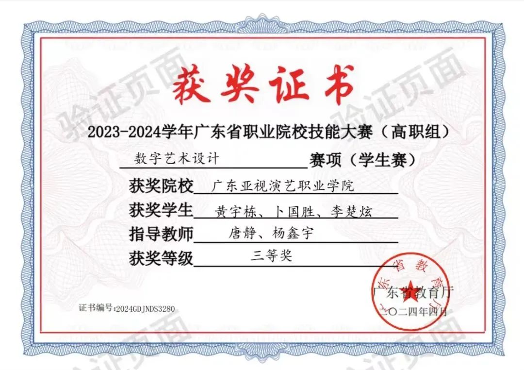 2024年,广东亚视演艺职业学院师生锐意进取、厚积薄发,各类学科竞赛和专业技能竞赛获省级以上(含)奖项达1500多项,取得历史性突破,较2023年度翻番。其中国家级奖434项,省级奖1148项。全国普通高校大学生竞赛排行榜(84项)内赛项440项,国家级98项,省级342项。这一系列成绩充分展现了我校“1+4”及“岗课赛证”综合育人模式的改革成果,彰显了学校的育人质量和办学水平。