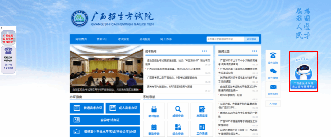 网页端入口:登录“广西招生考试院”网站,醒目位置将设置智能问答入口,点击即可开始咨询。