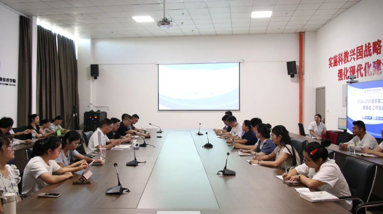 陈浩对各部门工作给予肯定,特别强调教务处推动科研项目从无到有、师生竞赛屡创佳绩的突出表现。他指出,做好教学工作关键在于落实,面对学生生源现状,全体教师应保持坚韧不拔的精神;同时要大力加强师资队伍建设,积极推动教师提升职称与学历水平,为教学质量提升提供人才支撑。