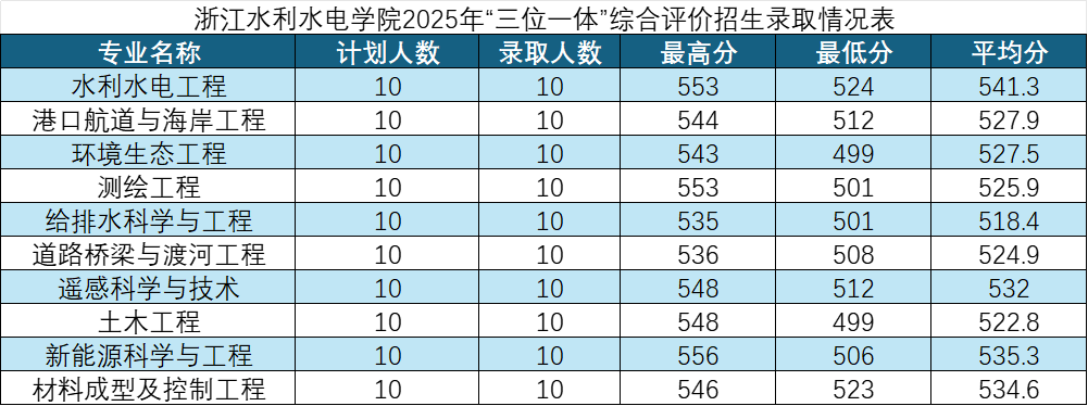 2025年浙江水利水电学院“三位一体”综合评价高考录取分数线