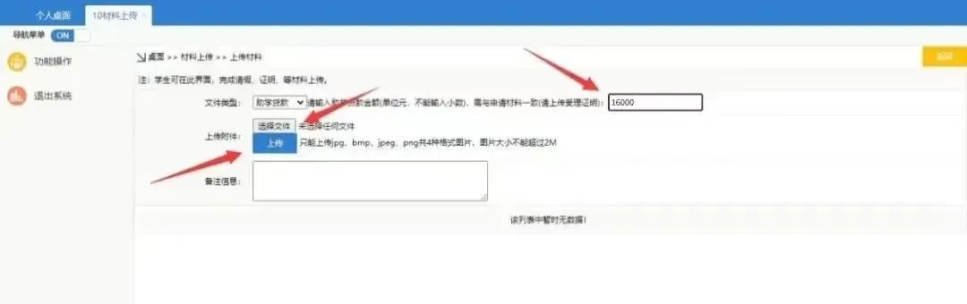点击“选择文件”,将标注有个人姓名和身份证号码的助学贷款受理证明(国家开发银行、中国银行、农商行),拍照上传(只能上传一张图片,请注意核对内容),并根据合同约定填写申请金额。