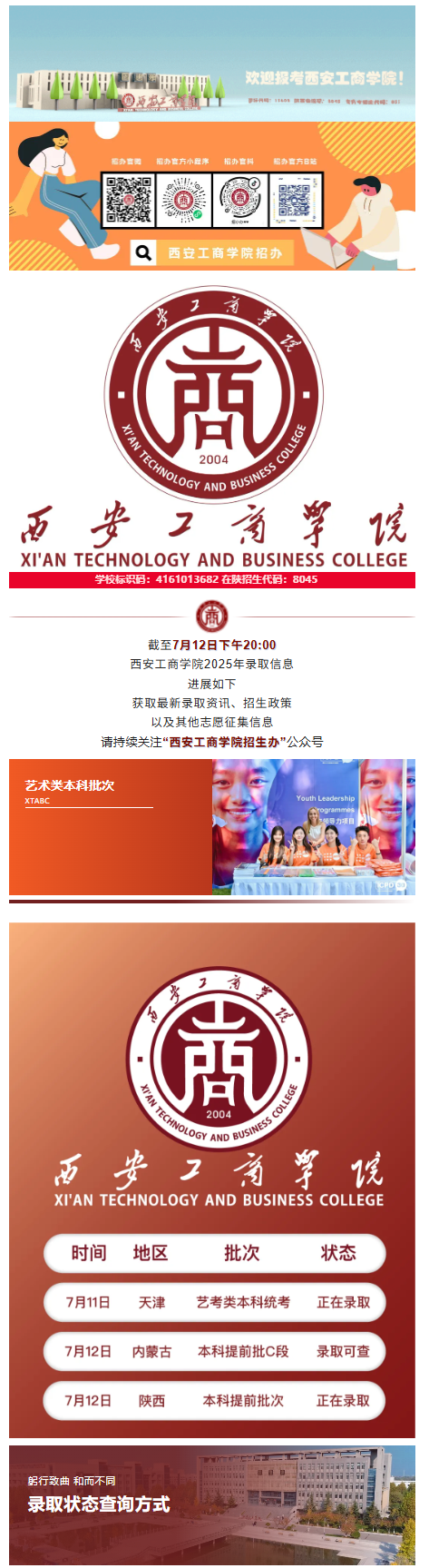 西安工商学院2025年录取进程Ⅰ(7月12日)