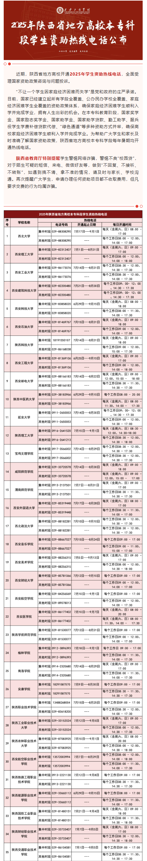 【考生关注】2025年陕西省地方高校本专科段学生资助热线电话公布