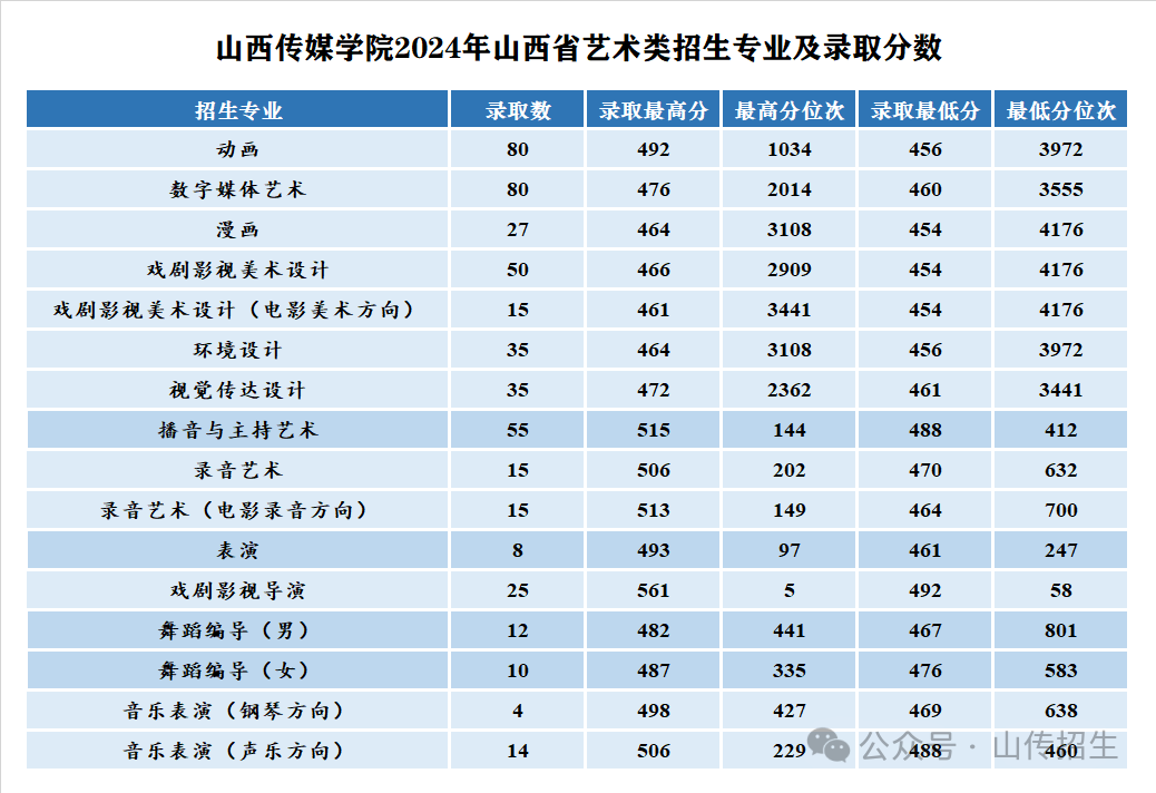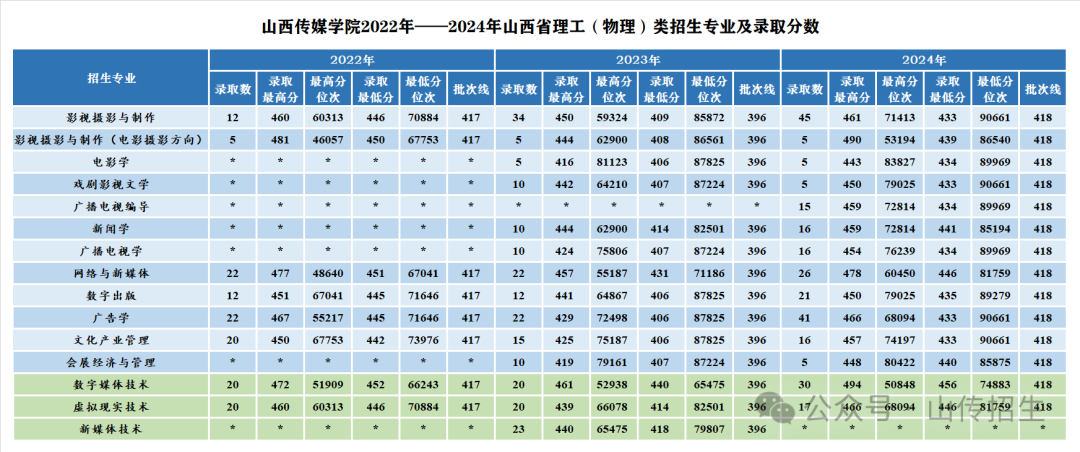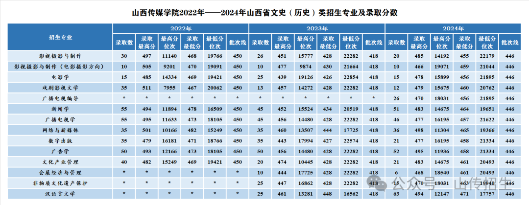 历年山西省招生专业及录取分数: