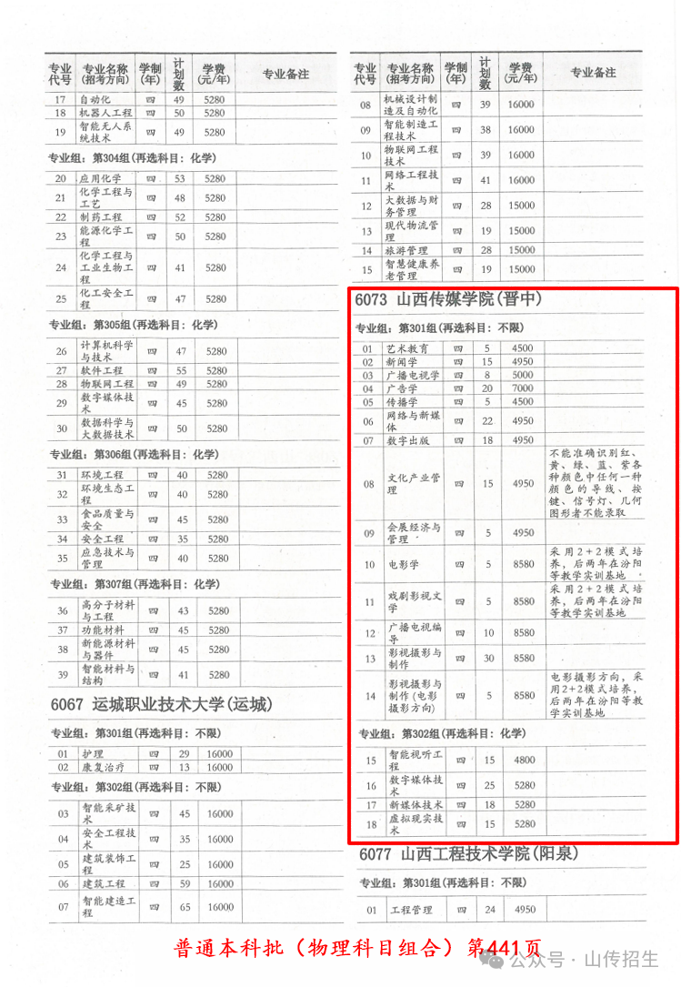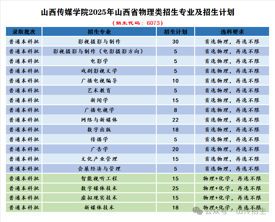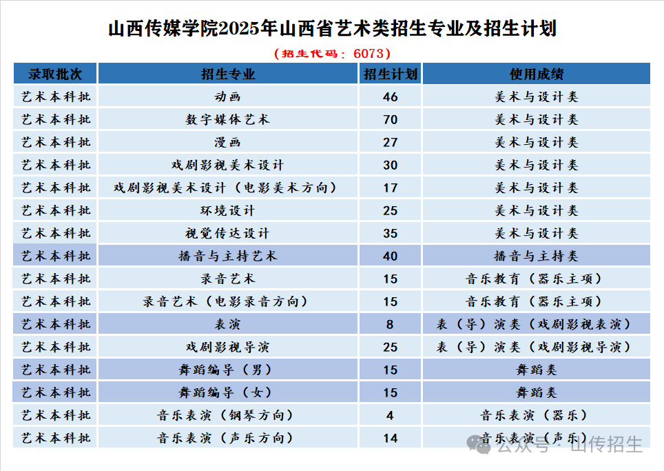 2025年我校35个本科专业及专业方向在山西省进行招生。(招生代码:6073)