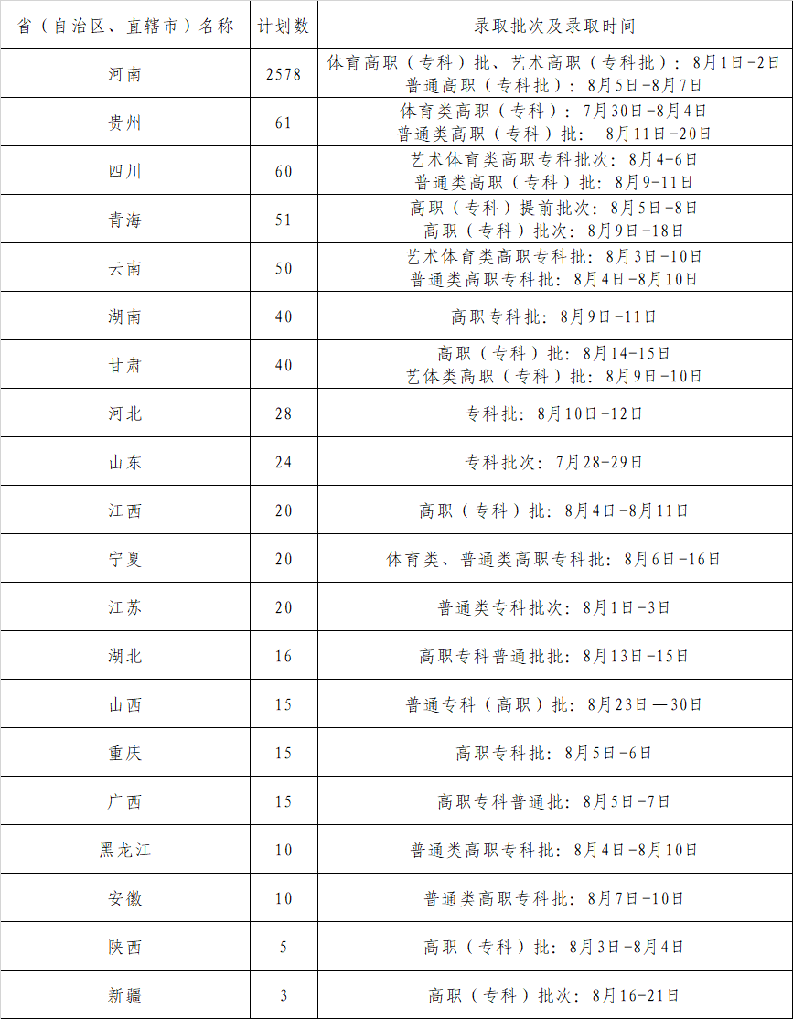 我校2025年普通高招录取工作将于7月28日正式启动,至8月下旬全部结束。具体录取时间将严格按照各生源省(自治区、直辖市)招生主管部门的统一安排执行,详细时间安排请查阅附件表格。