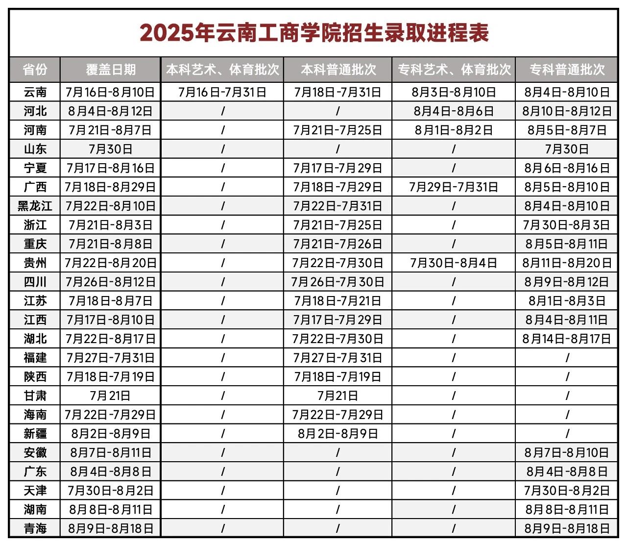 注:投档录取时间以各省(区、市)教育考试院实际时间为准,本表仅供参考。