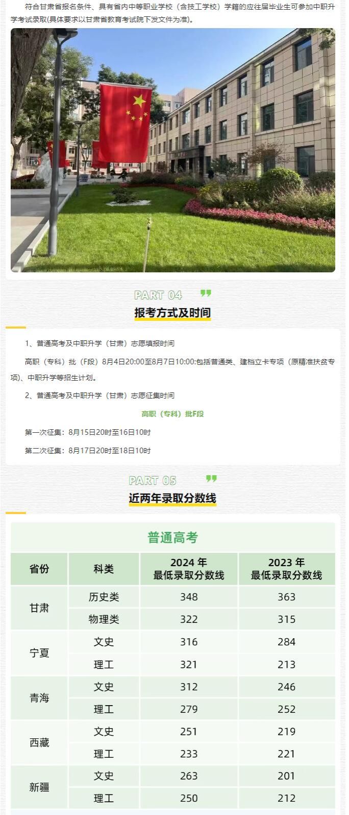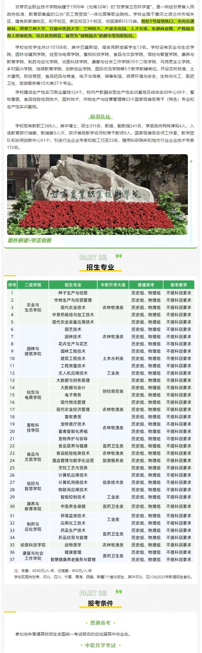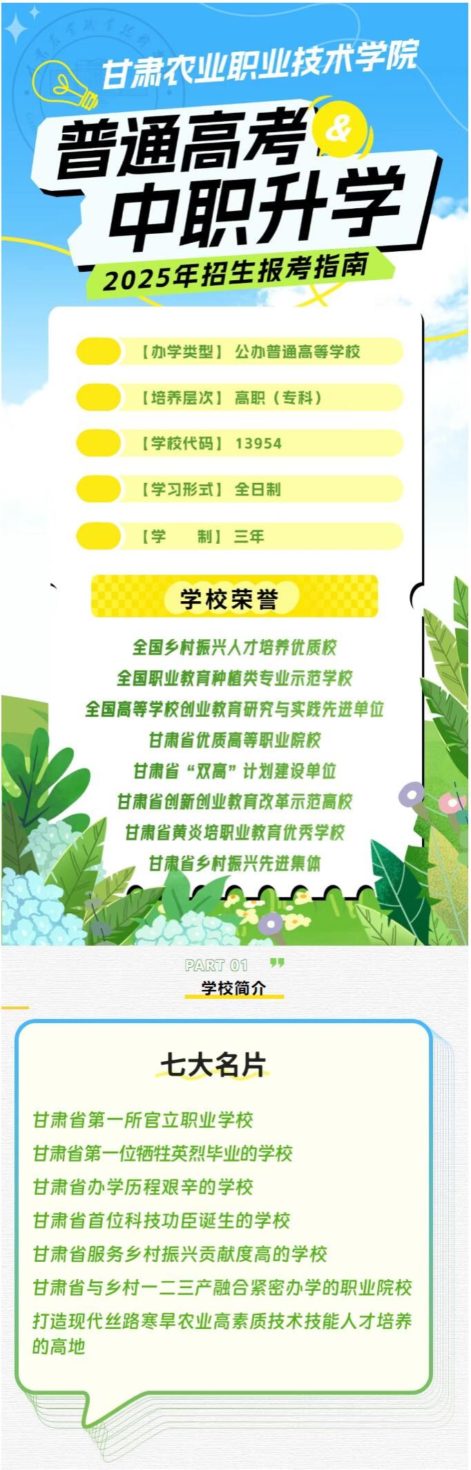 甘肃农业职业技术学院2025年普通高考、中职升学考试报考指南