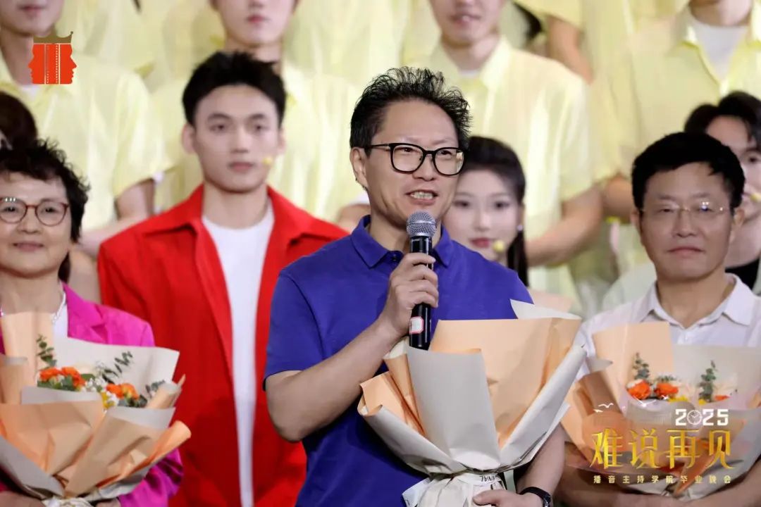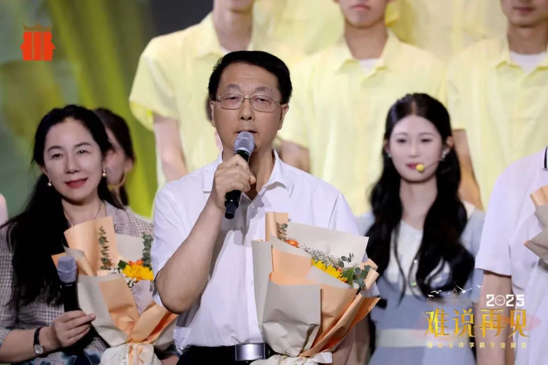 回顾在校时光,同学们心中充满感激。学校领导的关心、专业教师的教导、辅导员老师的关怀,都让学子们铭记于心。在直播现场,师长们像不舍的家长,面对即将展翅高飞的同学们,校、院两级领导、专业教师代表、辅导员们纷纷上台致辞,为学子送上临别寄语,勉励同学们要坚持终身学习,保持奋斗精神。