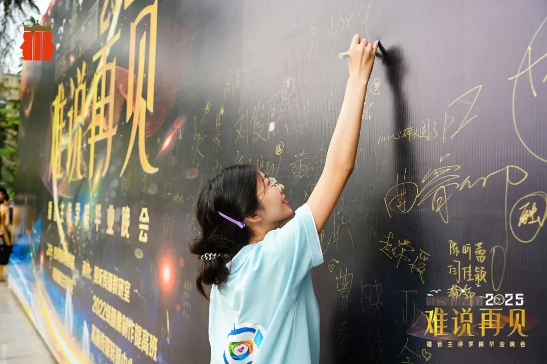 晚会现场内外都洋溢着真挚的情感,同学们或笑容灿烂,或眼含热泪,在签名墙前留下自己的名字和祝福。这些签名不仅记录着此刻的心情,更承载着对美好未来的期许。