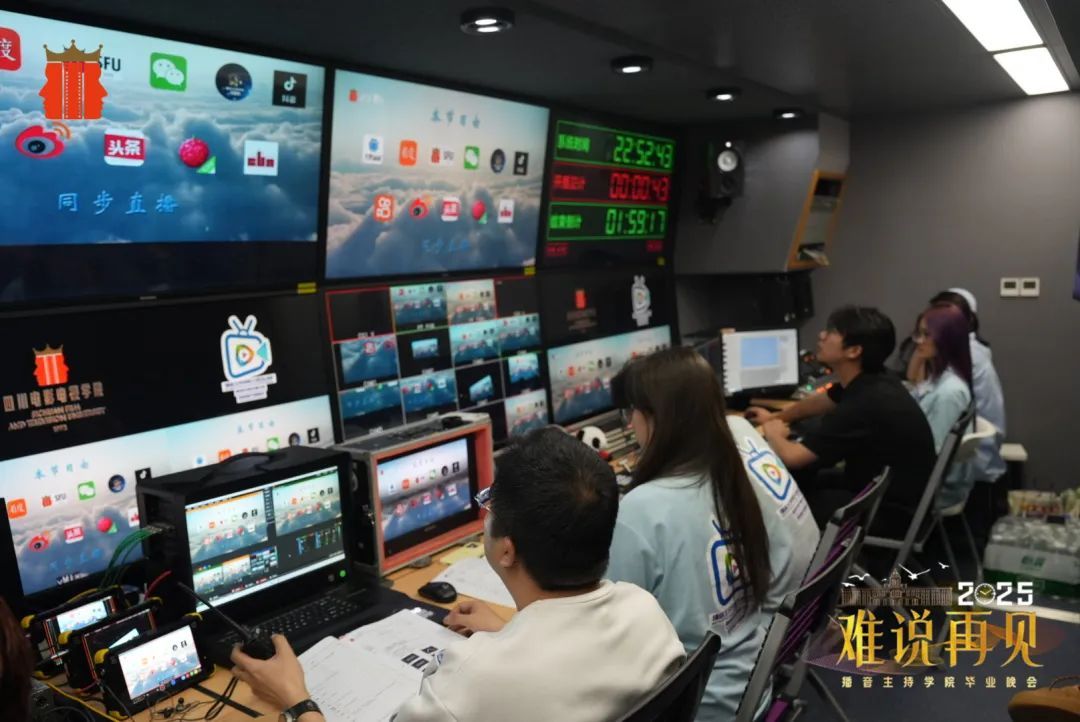 2025“难说再见”由22级摄像提高班的同学完成图文及视频直播工作。晚会通过河南广播电视台大象新闻、成都广播电视台看度新闻等主流媒体以及四川电影电视学院、川影招生办、川影播音主持学院视频号、抖音、快手、微博等网络媒体平台向全网进行了同步直播。