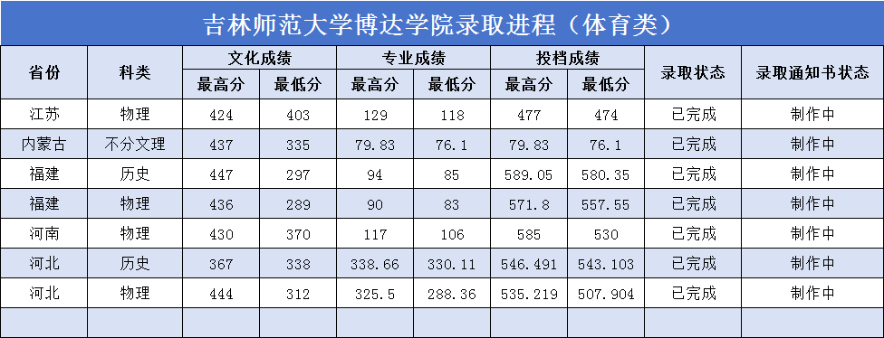 吉林师范大学博达学院2025年录取进程(7月14日)
