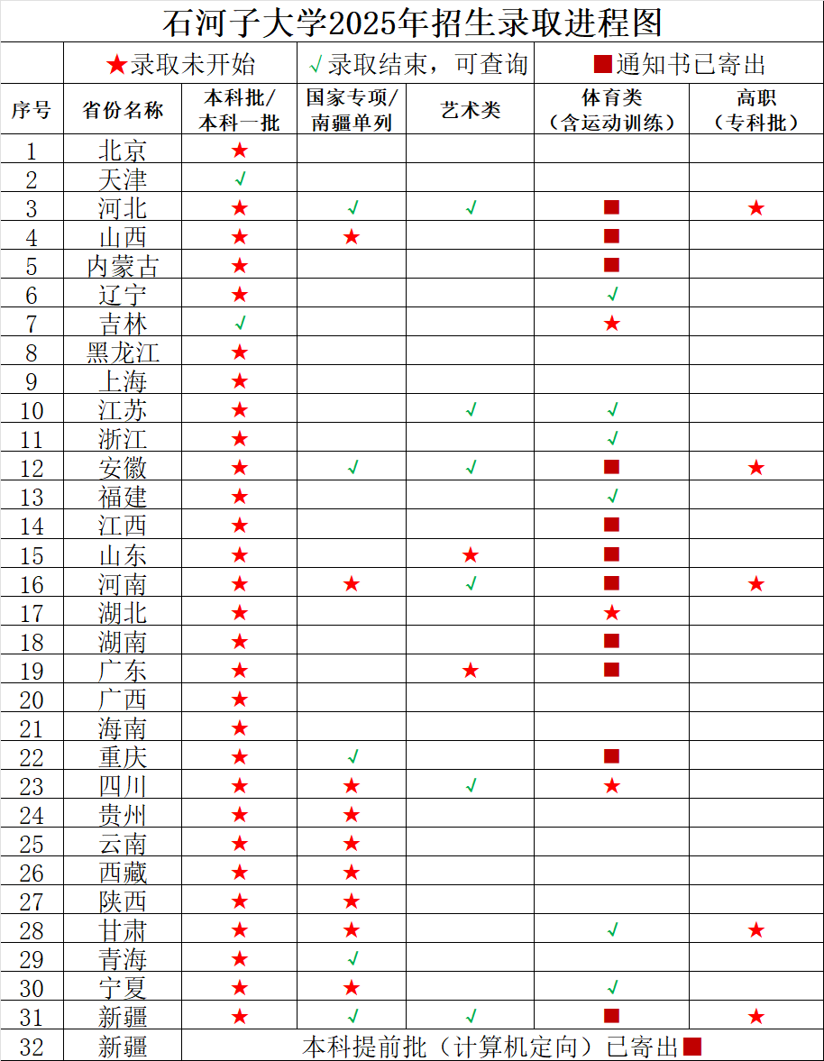 录取结果查询以教育考试院官网和我校招生网查询为准。请不要相信任何非官方的录取信息,谨防上当受骗。如有其他疑问请关注石河子大学本科招生微信公众号: