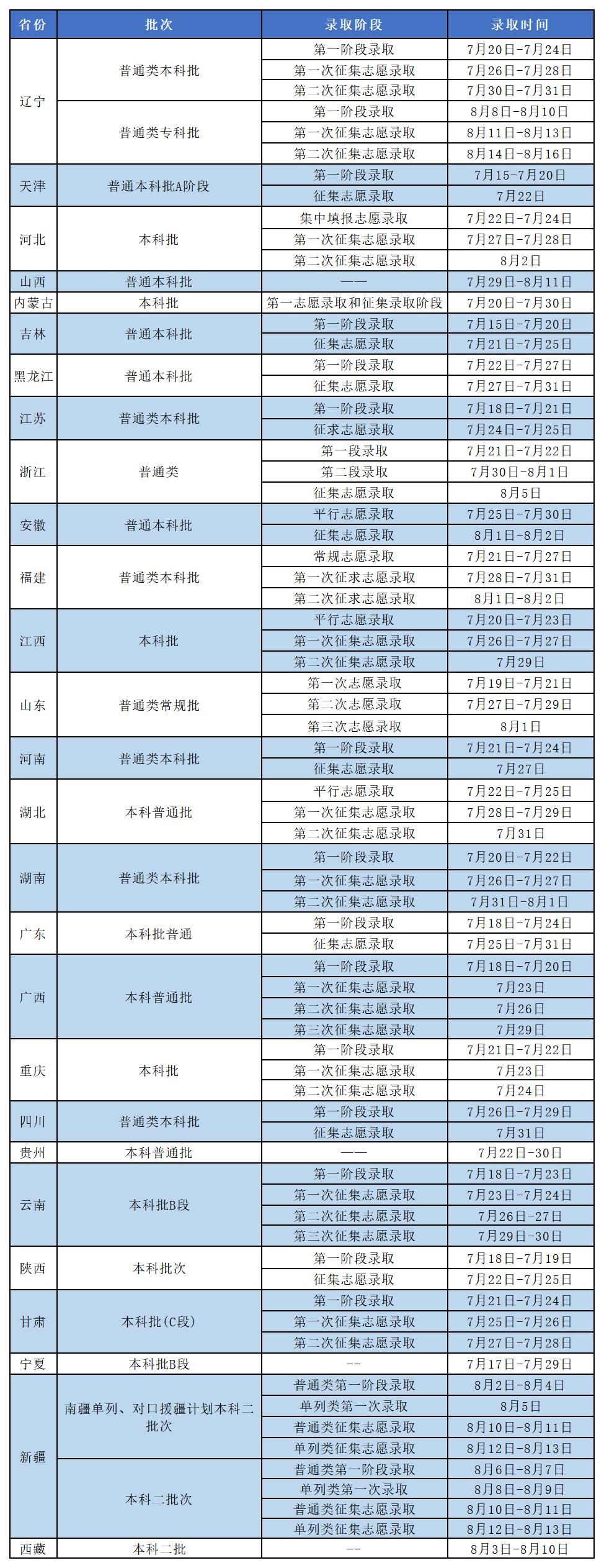 1.各省、自治区和直辖市各批次录取时间不同,请各位考生耐心等待录取结果;