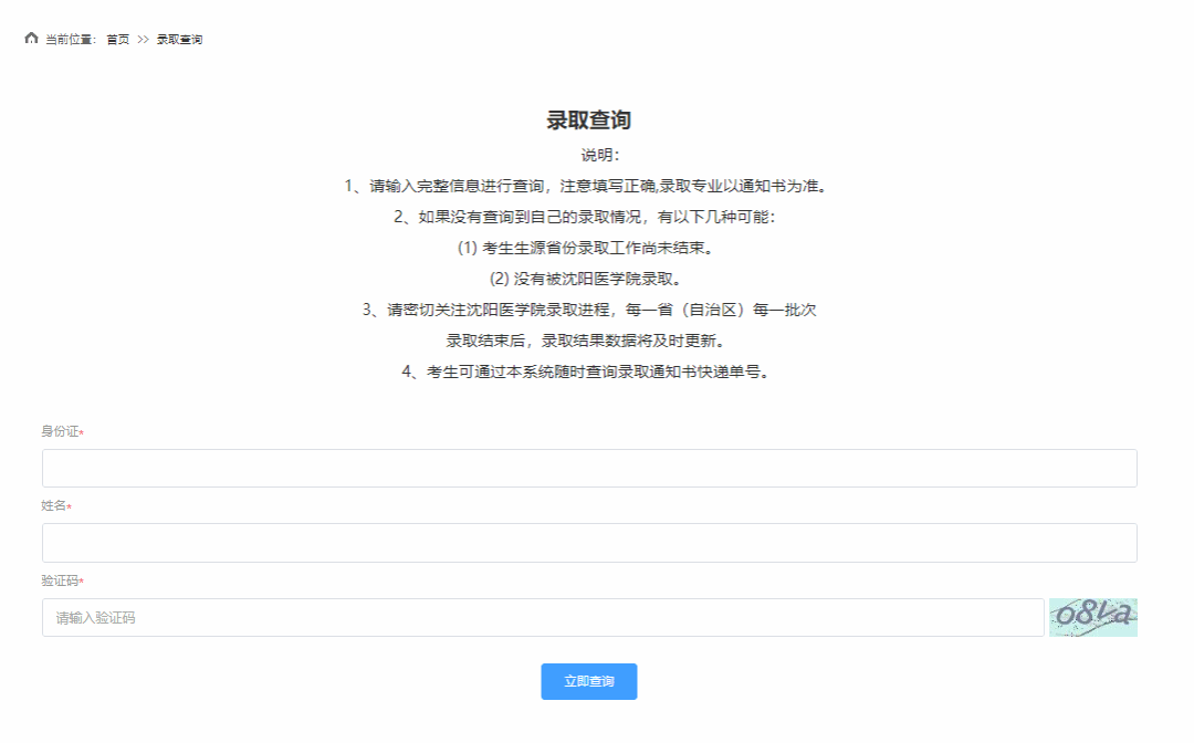 (1)登录学校招生信息网(https://zssy.symc.edu.cn/index.htm),翻到网页底部“录取查询栏目”,点击进入
