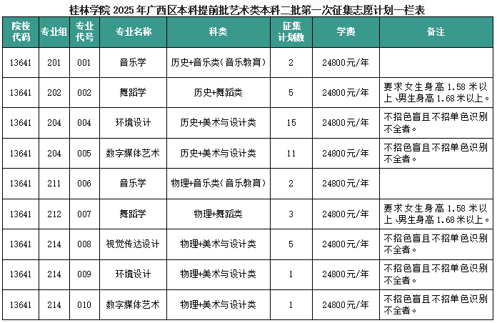广西区本科提前批艺术类本科二批第一次征集志愿