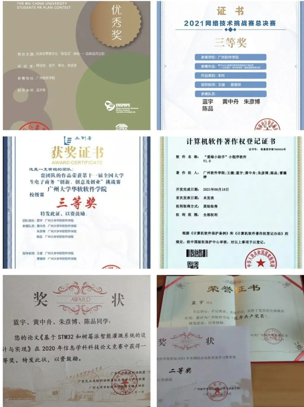 蓝宇部分获奖证明