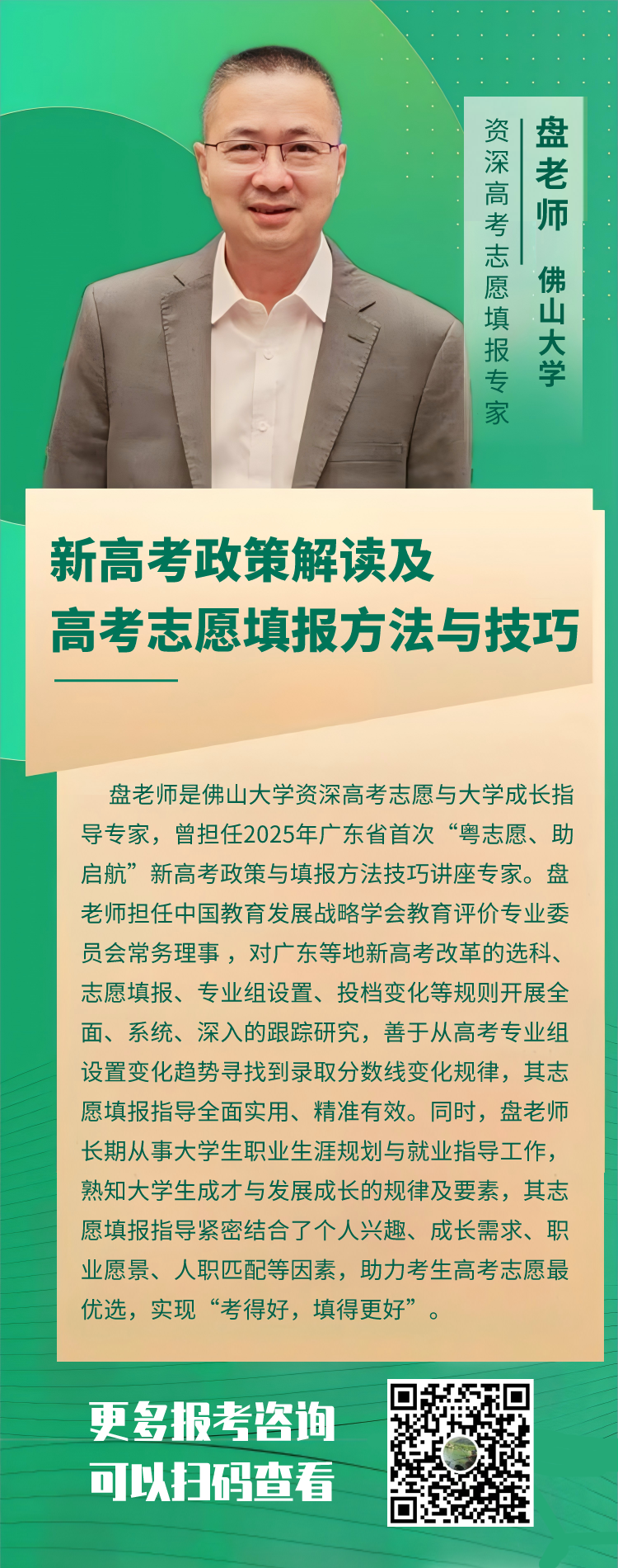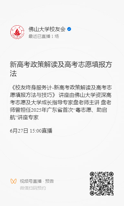 6月27日(周五)下午3:00,佛山大学本科招生办特邀「高考志愿填报王牌专家」盘老师空降直播间!带您破解2025新高考密码,手把手教您用“冲稳保”战术拿下心仪大学!