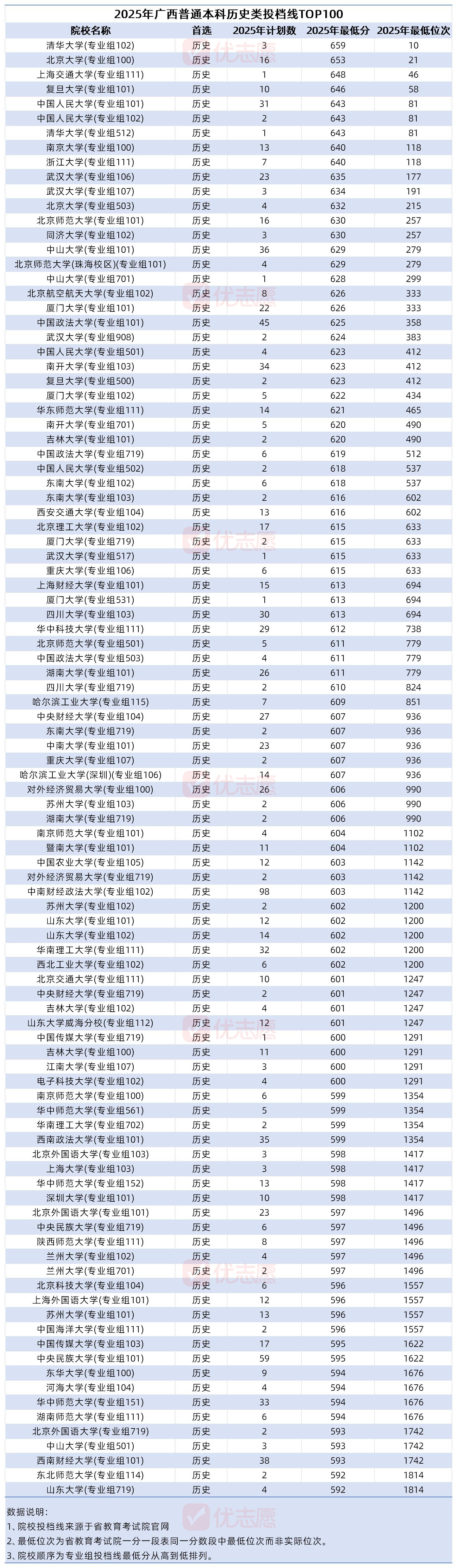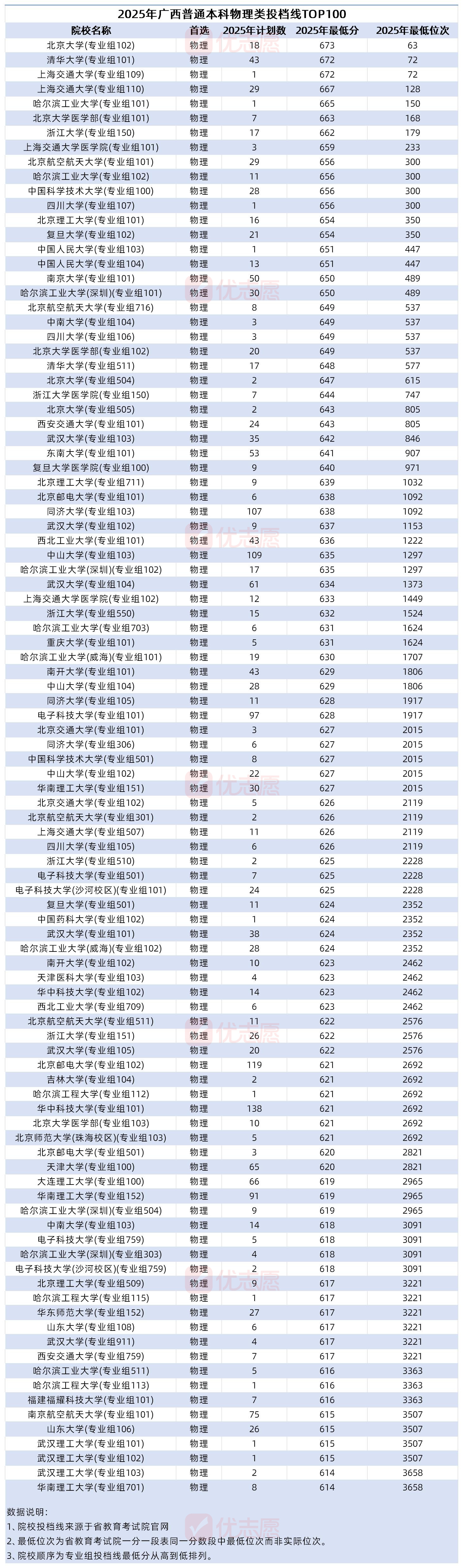 近日,2025年广西普通本科投档线正式公布。对各高校及各专业组的投档线情况展开深入探究,不仅能够清晰复盘今年的录取整体局势,更能为未来的考生后续的备考安排以及志愿规划精准锚定目标。接下来,就和小优一起详细了解今年的录取情况吧!