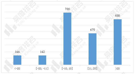 可以看出超50%的院校-专业组与上一年度的同位分上涨10分以上,仅12%的专业同位分下降10分以上,整体报考难度大幅增加。