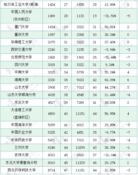 1.50%以上的院校同位分上涨10分以上,报考难度大幅增加