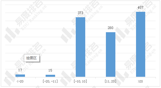 可以看出超60%的院校-专业组与上一年度的同位分上涨10分以上,不足3%的专业同位分下降10分以上,整体报考难度大幅增加。