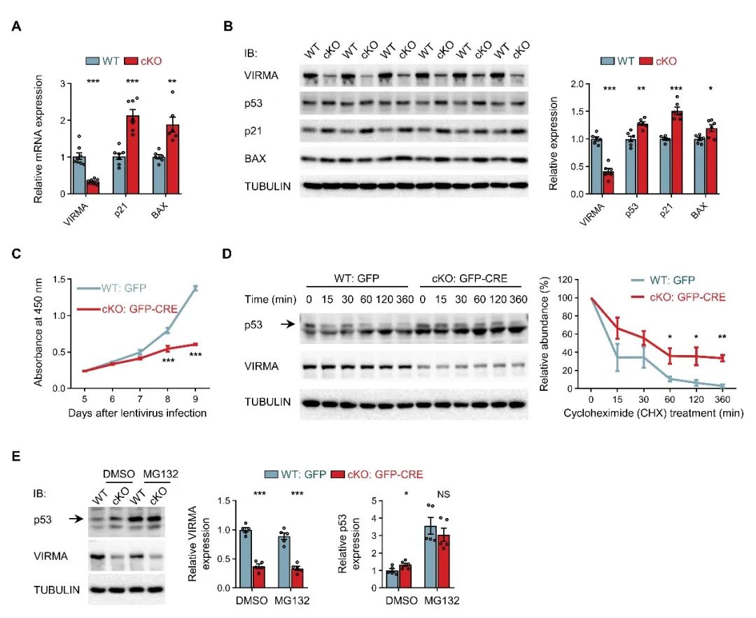 图3. VIRMA缺失通过p53依赖的核仁应激反应