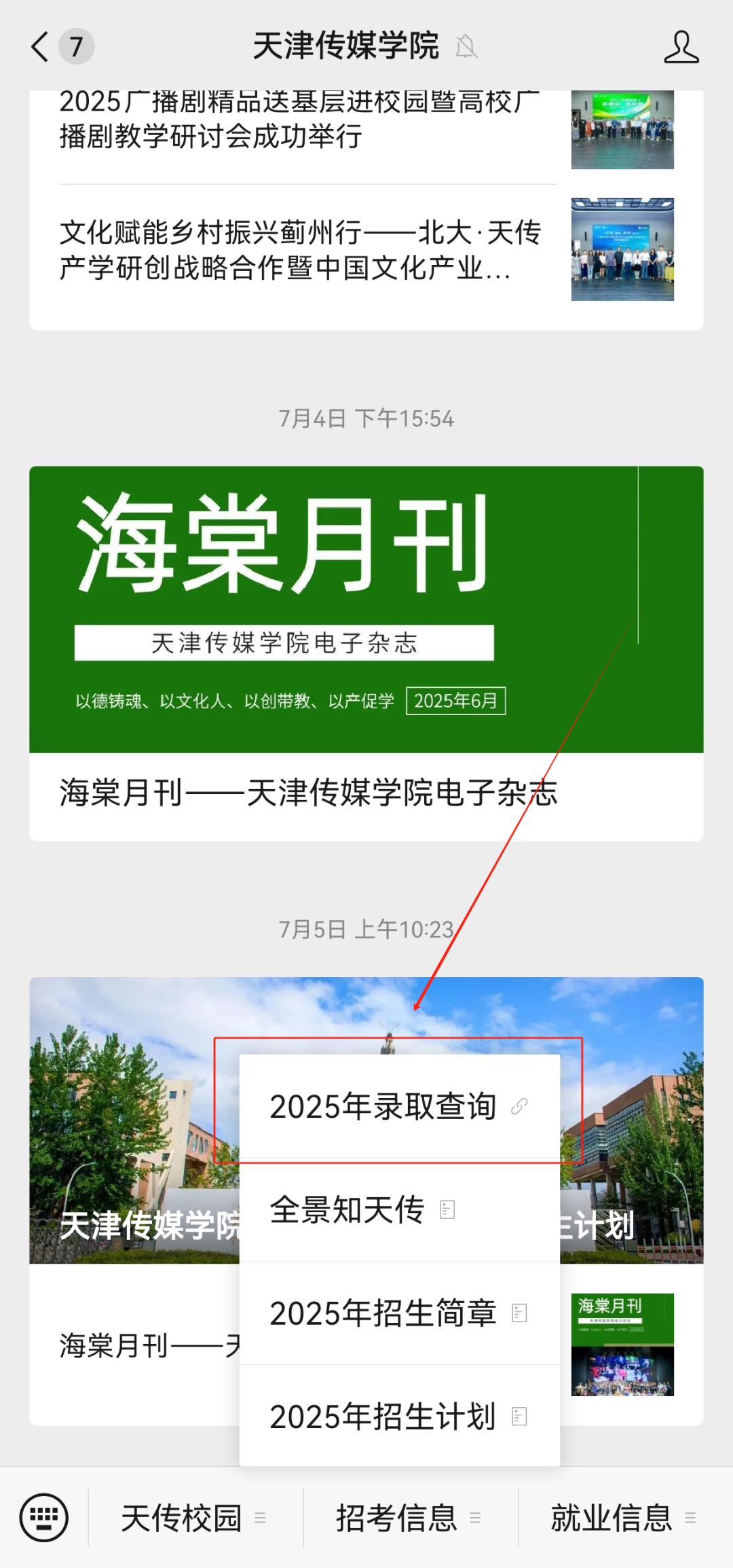 点击“2025录取查询”