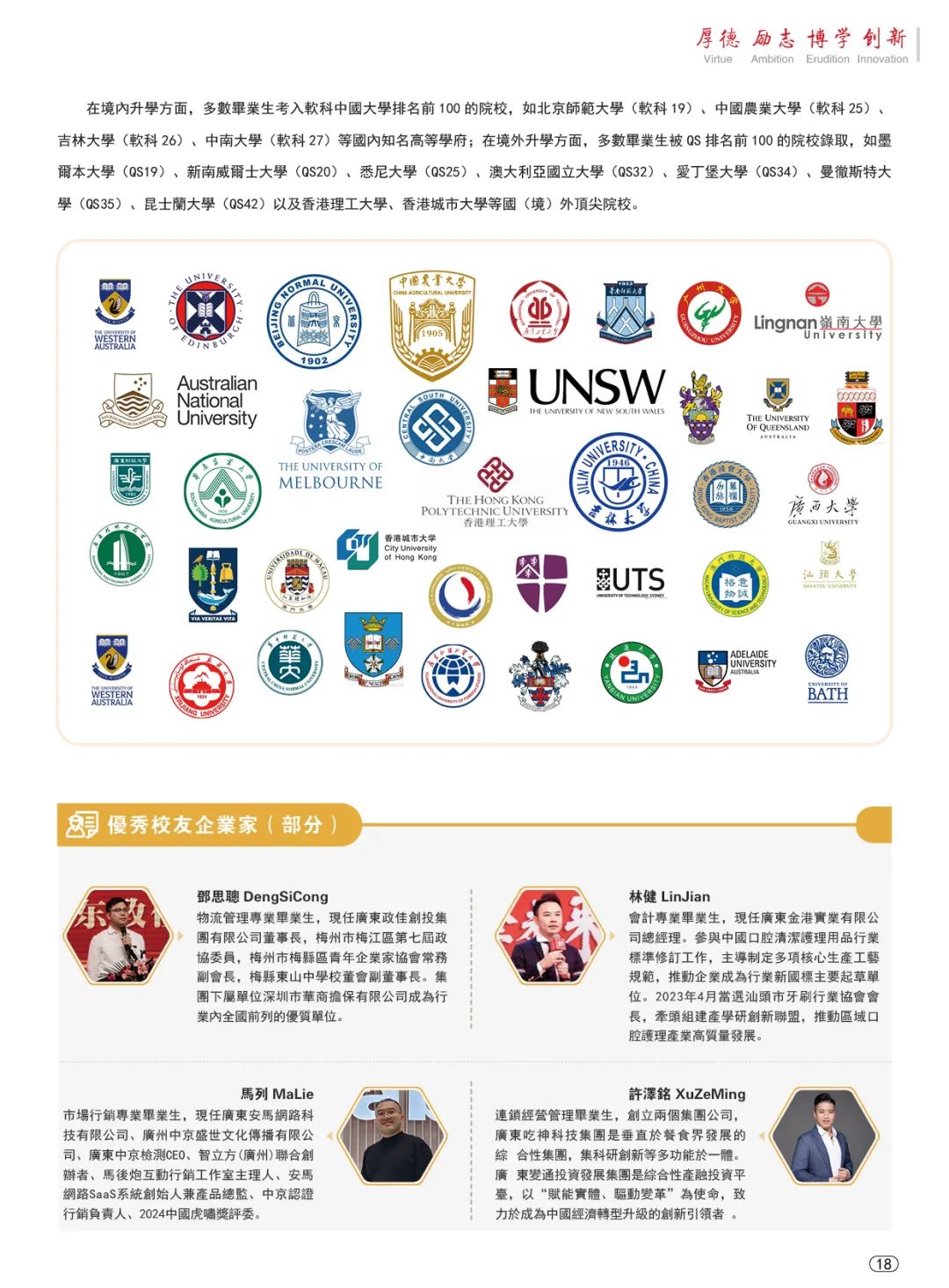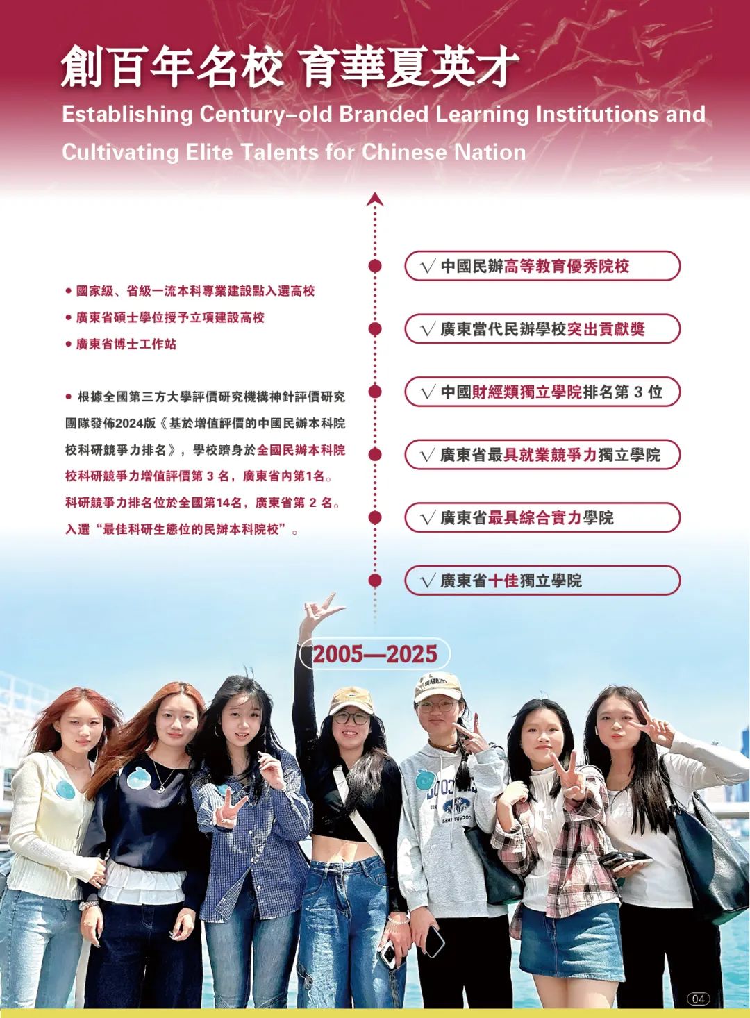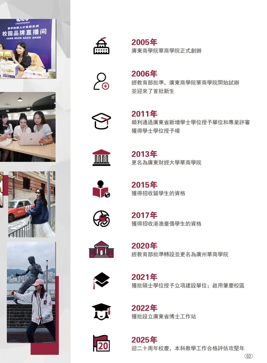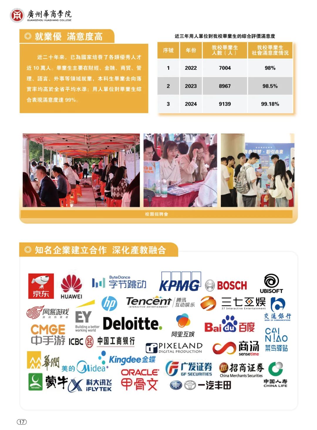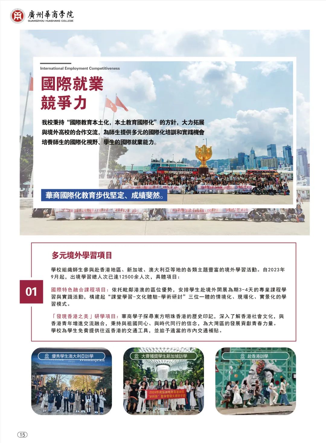 广州华商学院是一所以“华商文化”和“融合育人”为特色的应用型本科院校,以本科教育为主,积极发展研究生教育;立足湾区,辐射全国;面向基层、服务地方。学校创新国际化办学模式,国际化教育覆盖所有本科专业,通过“走出去”学习交流实践,不断提高学生语言能力、综合能力和就业能力,助力高质量就业。