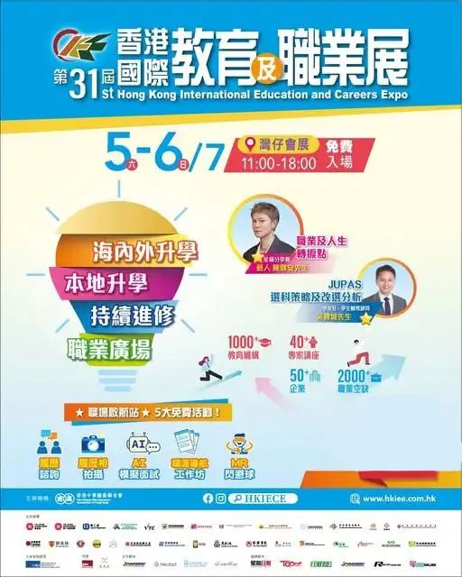 由香港中华厂商联合会(厂商会)主办的“第31届香港国际教育及职业展”于7月5日至6日在香港会议展览中心举行。展会设有“海外及内地升学区”“本地升学区”以及“职业广场”三大展区,云集超过20个国家及地区逾1000间院校和教育机构,还有众多资深升学顾问也参与其中。