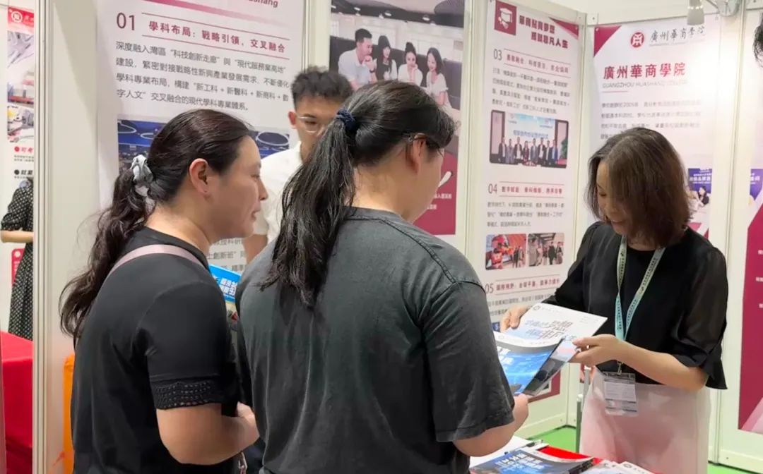 会展现场在展会现场,华商学院参会教师为每一位前来咨询的港澳学生及其家长提供了详细解答,借助宣传手册和招生资料,全面介绍了学校的办学特色、师资力量、教学设施,以及针对港澳台侨学生的招生政策和项目细节。通过该交流平台,港澳台侨学生及其家长对广州华商学院有了更深入、直观的认识。