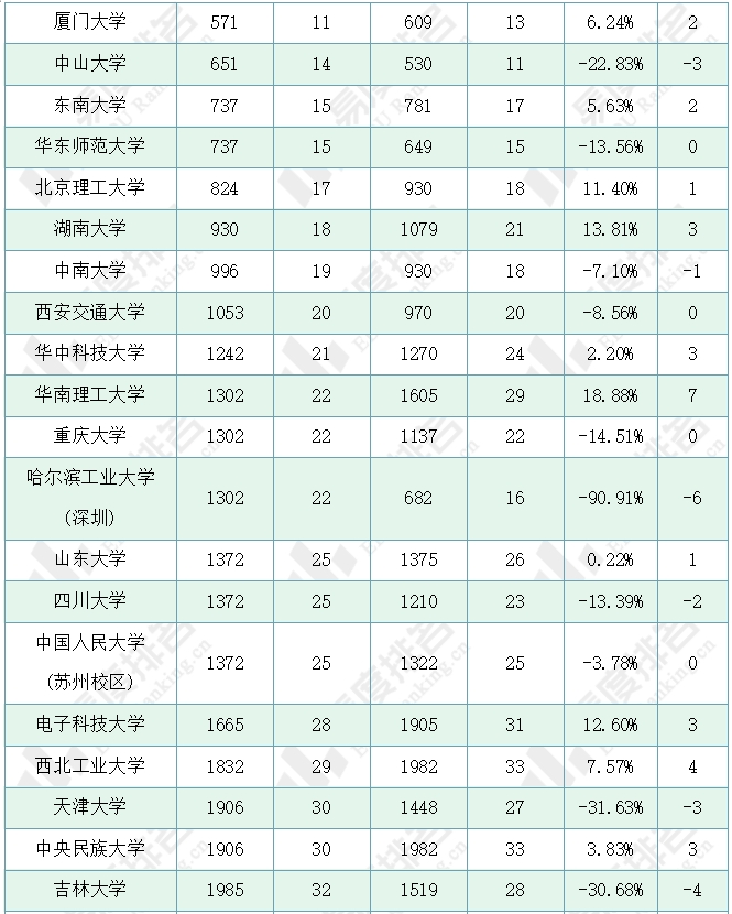 注:1.排名仅为985院校中的排名;2.除