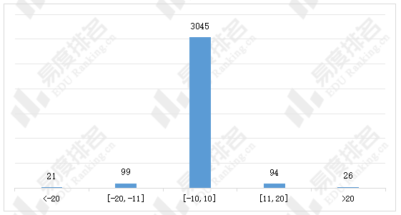 可以看出超80%的专业与上一年度的同位分差在10分以内,投档位次下降的专业略多于上升的,但整体来看,重庆历史的投档