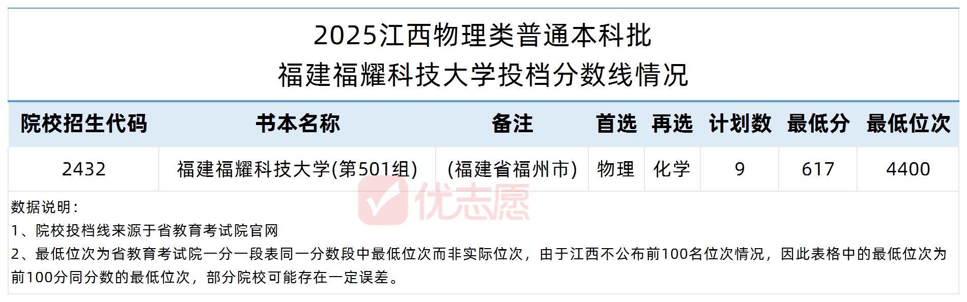 首次招生的福建福耀科技大学表现突出,其专业组投档最低分617分(对应位次4400 名)已超越厦门大学部分专业组。这一现象的背后,首先得益于其精英化招生策略 ——2025 年仅面向5省份招收50名本科生,其中江西省计划仅9人,稀缺的招生名额引发高分考生激烈角逐,直接推升了录取位次。同时,学校创新的培养模式形成显著吸引力:实施 “个性化培养、自主选择、多元发展” 机制,支持学生依兴趣与规划自由定专业;推行的本博贯通培养模式打破传统分段教育壁垒,为考生提供确定性升学路径,有效缓解了升学焦虑。