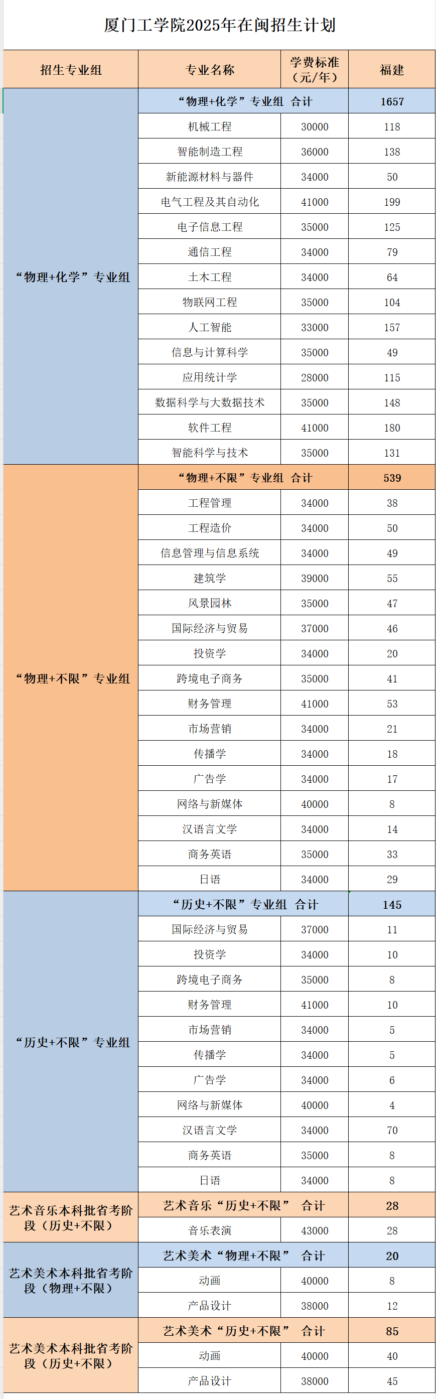 2025年福建招生计划