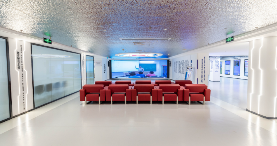 教育信息文化馆分为四个部分:序厅、信息史、信息时代的教育、人工智能时代的教育新形态,展示了信息技术在教育领域的发展历程和实际运用成果。
