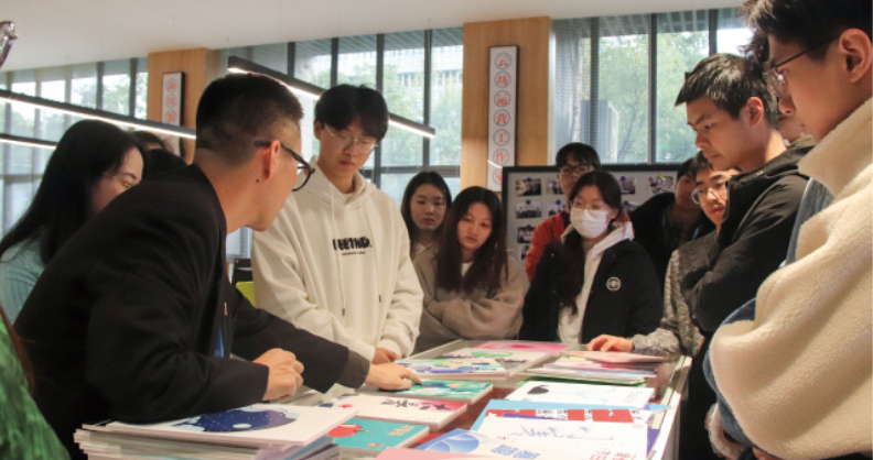 文化创意创作坊在2018年成立,位于图书馆一层,含四大功能区、两家公司及三个销售门店,以师徒制实践教学促专业融合。