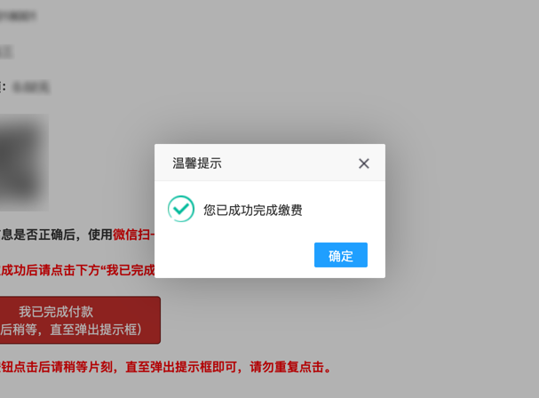 4、付款成功后,点击页面“我已完成付款”按钮,如下图所示。