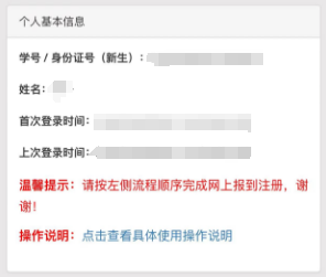 恭喜您,您已完成所有网上报到流程填写,接下来您只需等待开学报到时到校完成现场确认即可。到校完成现场报到流程后,直接到所选宿舍楼栋公寓管理处领取钥匙即可入住。