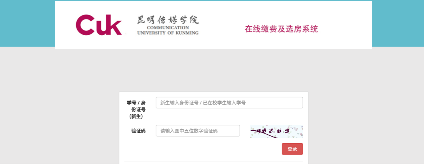 在开始缴费之前建议您使用电脑浏览器进行操作,也可以使用手机进行操作,打开浏览器在网址栏输入昆明传媒学院官方网址:https://www.cukm.edu.cn,进入后点击顶部“在线缴费系统入口”,进入后界面如下图所示。